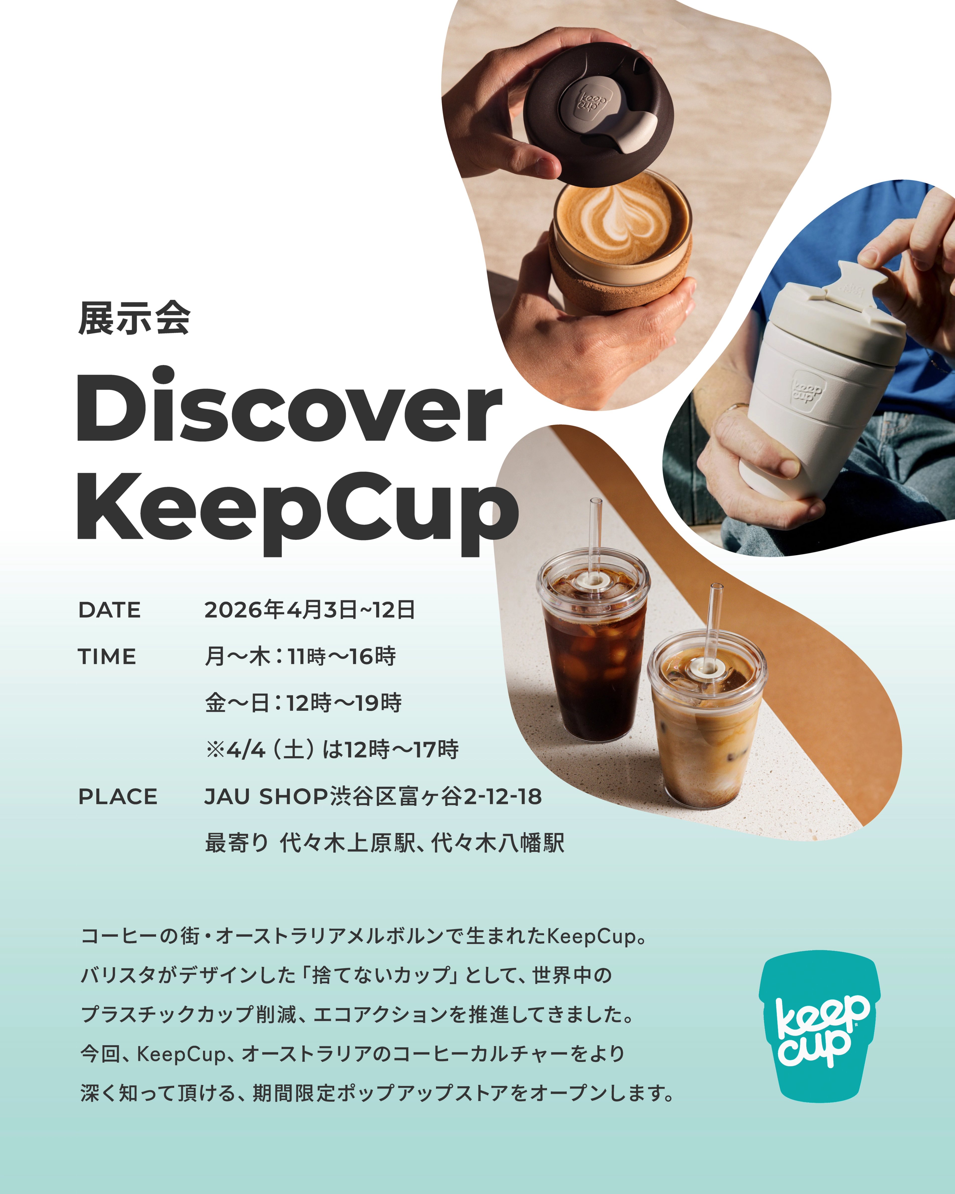 この度、KeepCupをより深く知って頂けるよう「Discover KeepCup」と題した展示会/POP-UPを開催致します。日本新発売のモデルやカラーや、KeepCupメルボルン本社の様子などをご紹介。KeepCupが大切にしている環境への姿勢や製品へのこだわりなど、オーストラリアの本社と連携してお届けします。