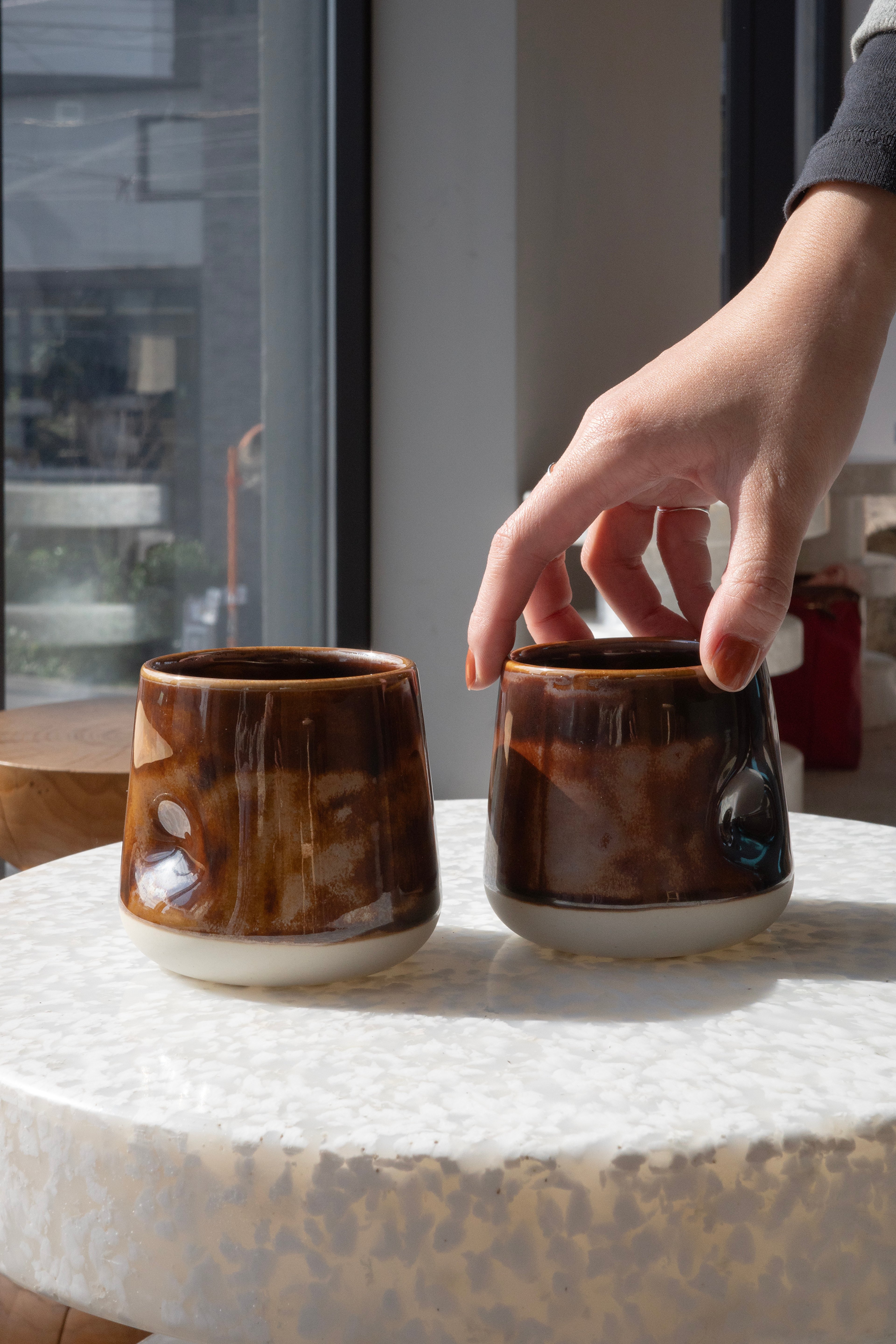 オーストラリアのデザイナー Rina Bernabei と有田焼の職人によるコラボレーションから生まれたカップ。指に自然に馴染む「くぼみ」のフォルムが特徴です。表面は柔らかな色合いの釉薬で仕上げられ、手触りと風合いに温もりを感じられます。コーヒーやティーはもちろん、小さなデザートにもぴったり。