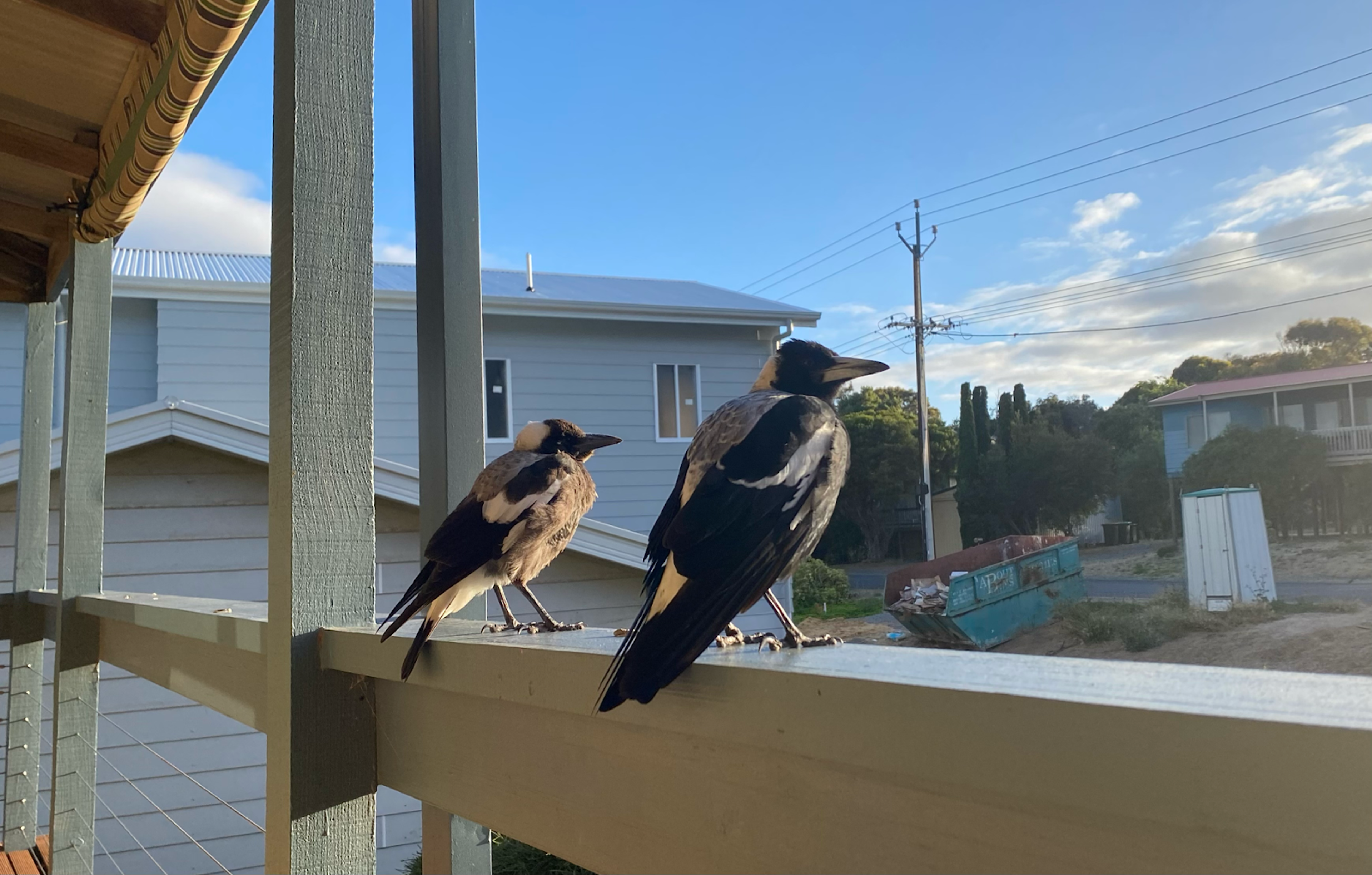 おはようございます、とまずは窓の外にいたマッグパイの親子にご挨拶。奥にいる毛がふかふかな方がお子様です。この親子は毎日挨拶に来てくれました。朝日を浴びてご機嫌です。