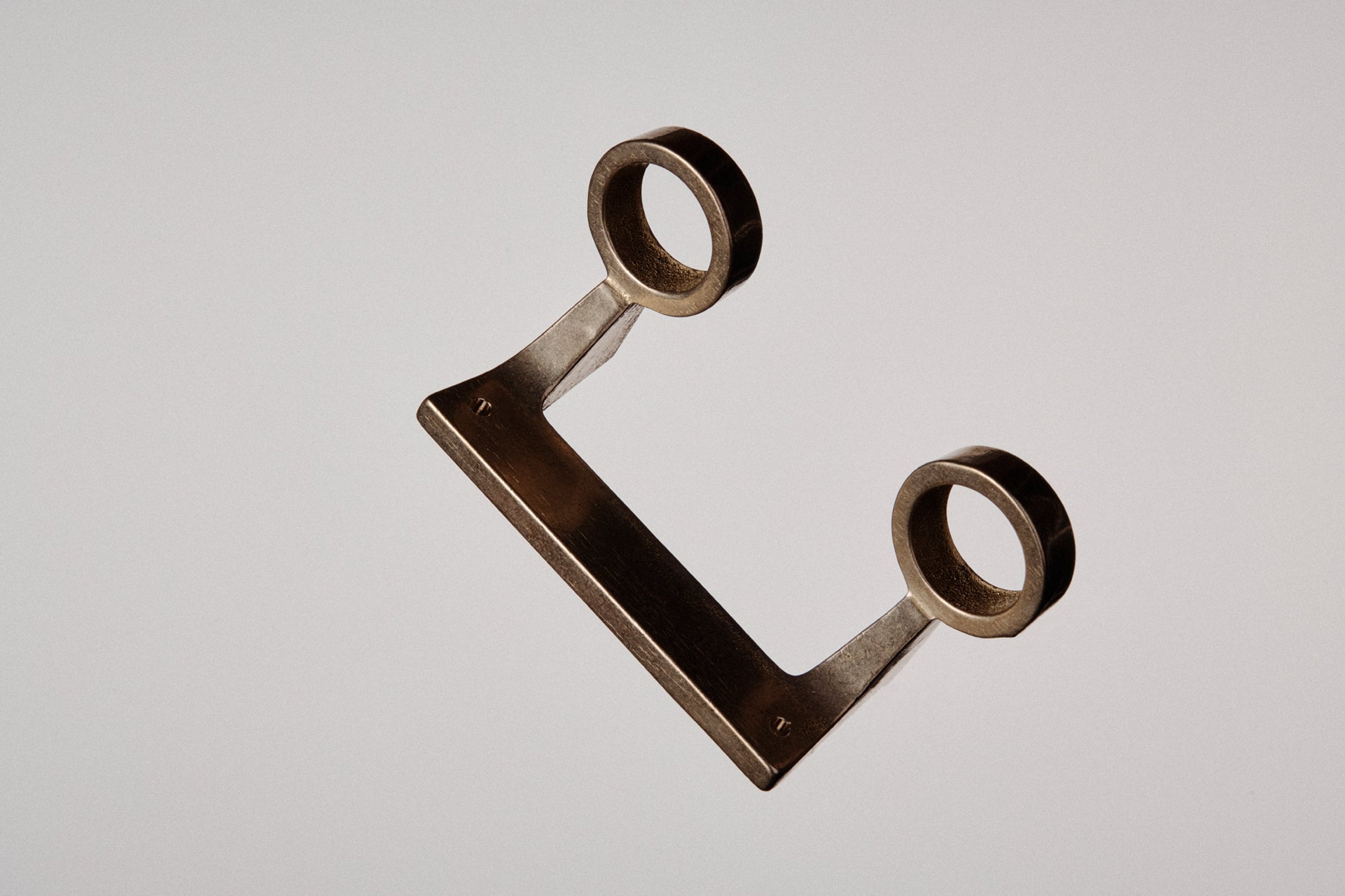 The Bottle Bracket is manufactured in small batches, slight variations will occur from piece to piece. Production marks may include slight pour ripples or surface pitting. They will arrive with a bright finish but will oxidise and darken over time to reveal a distinctive patina. Simply use a metal polish to restore a like-new finish.