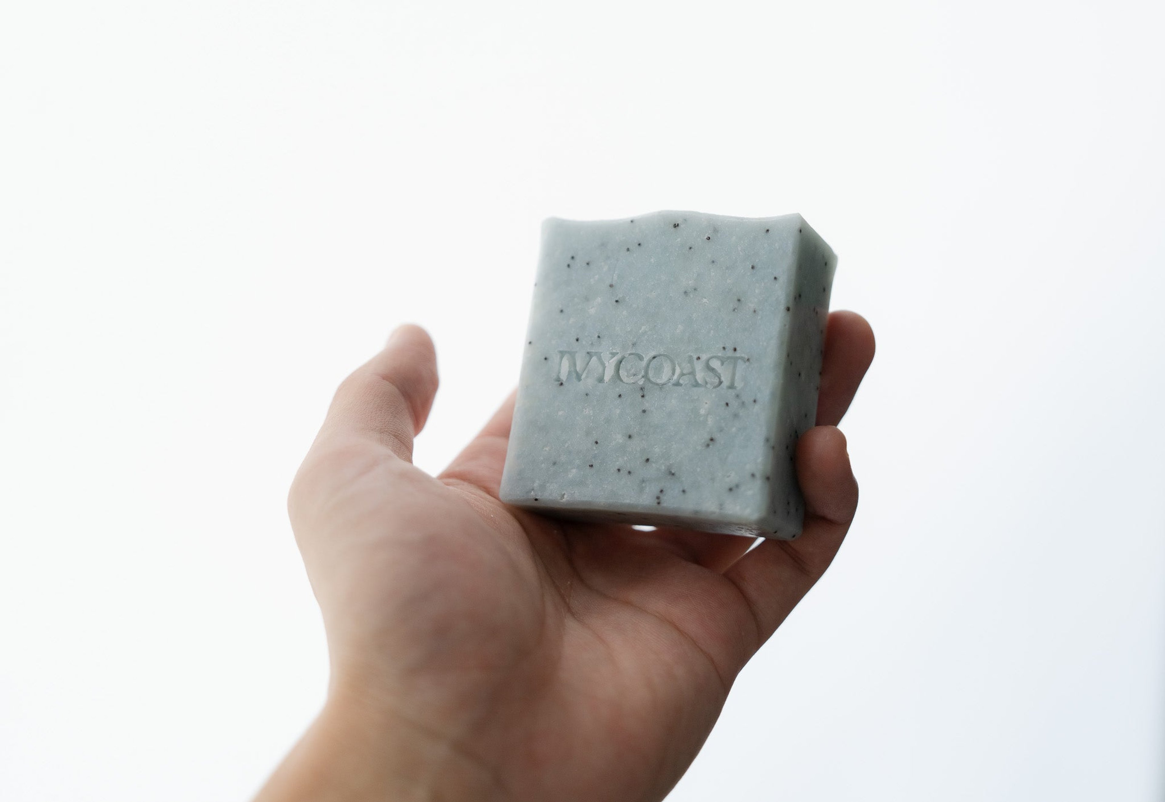 Olive oil, coconut oil, cocoa butter, Australian pink salt, poppy seeds, blue clay, peppermint essential oil, CBD broad-spectrum oil, sodium hydroxide (NaOH), purified water.