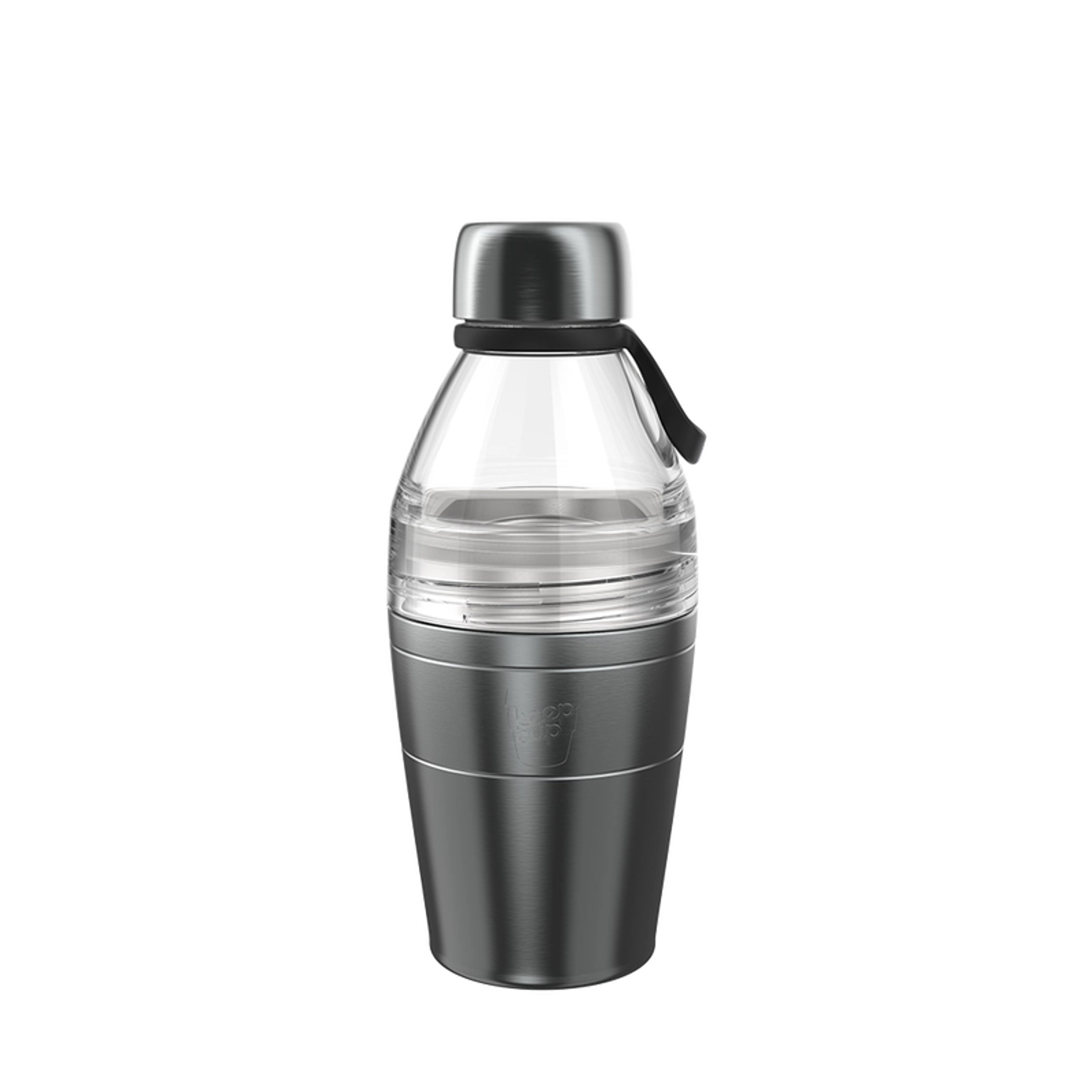 Unscrews in the middle to fill with fruit, ice, boba and everything in between. Made from double-walled, insulated stainless steel and lightweight, clear plastic.
