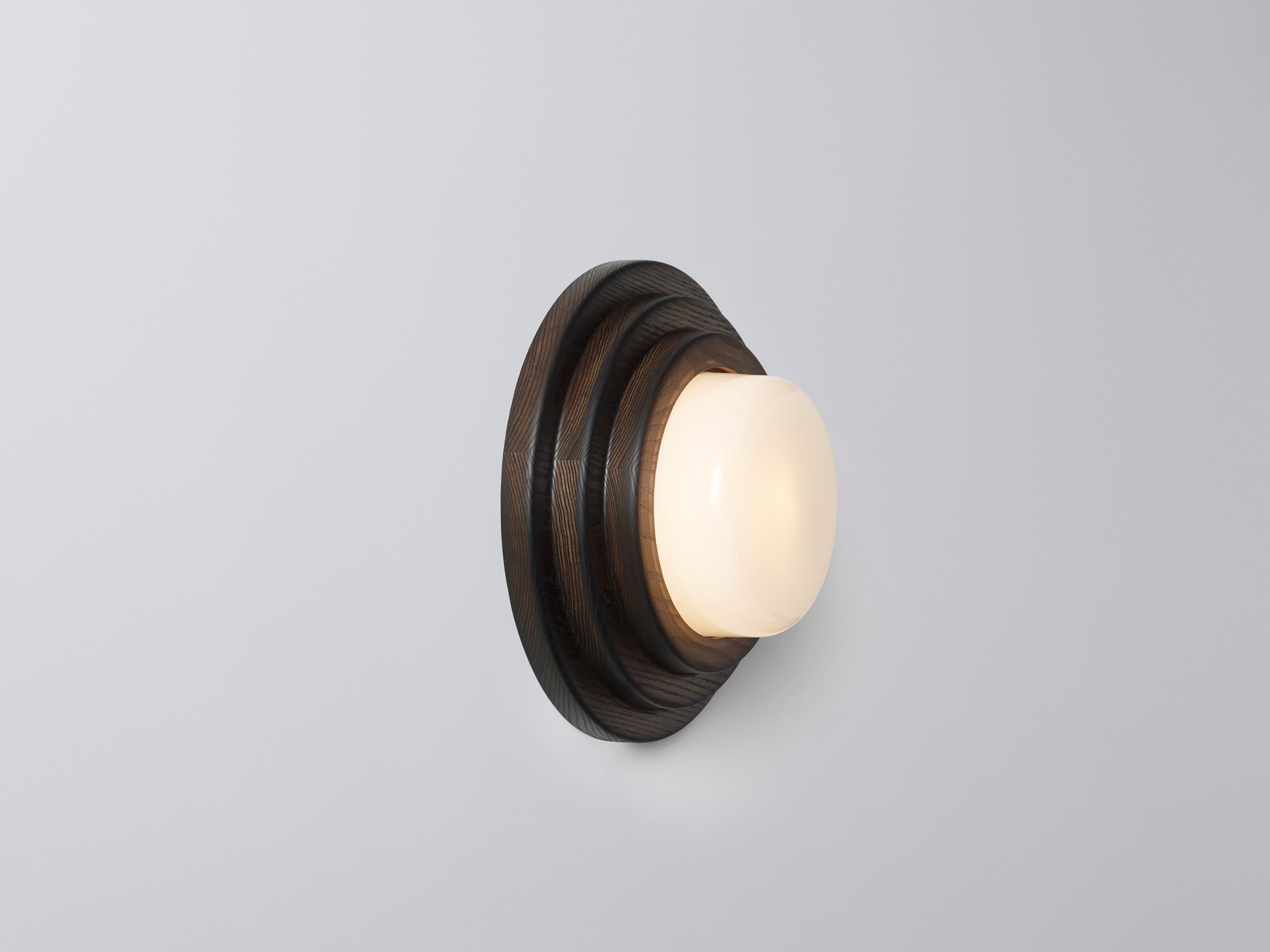 Offered in slip cast ceramic stoneware, or hand turned American White Oak, a number of glazes and finishes are available. White or pink hand blown glass completes the piece, and provides a soft, diffuse glow. Honey is a sculptural statement piece that celebrates Melbourne’s local artisans and provides a subtle ambient light.