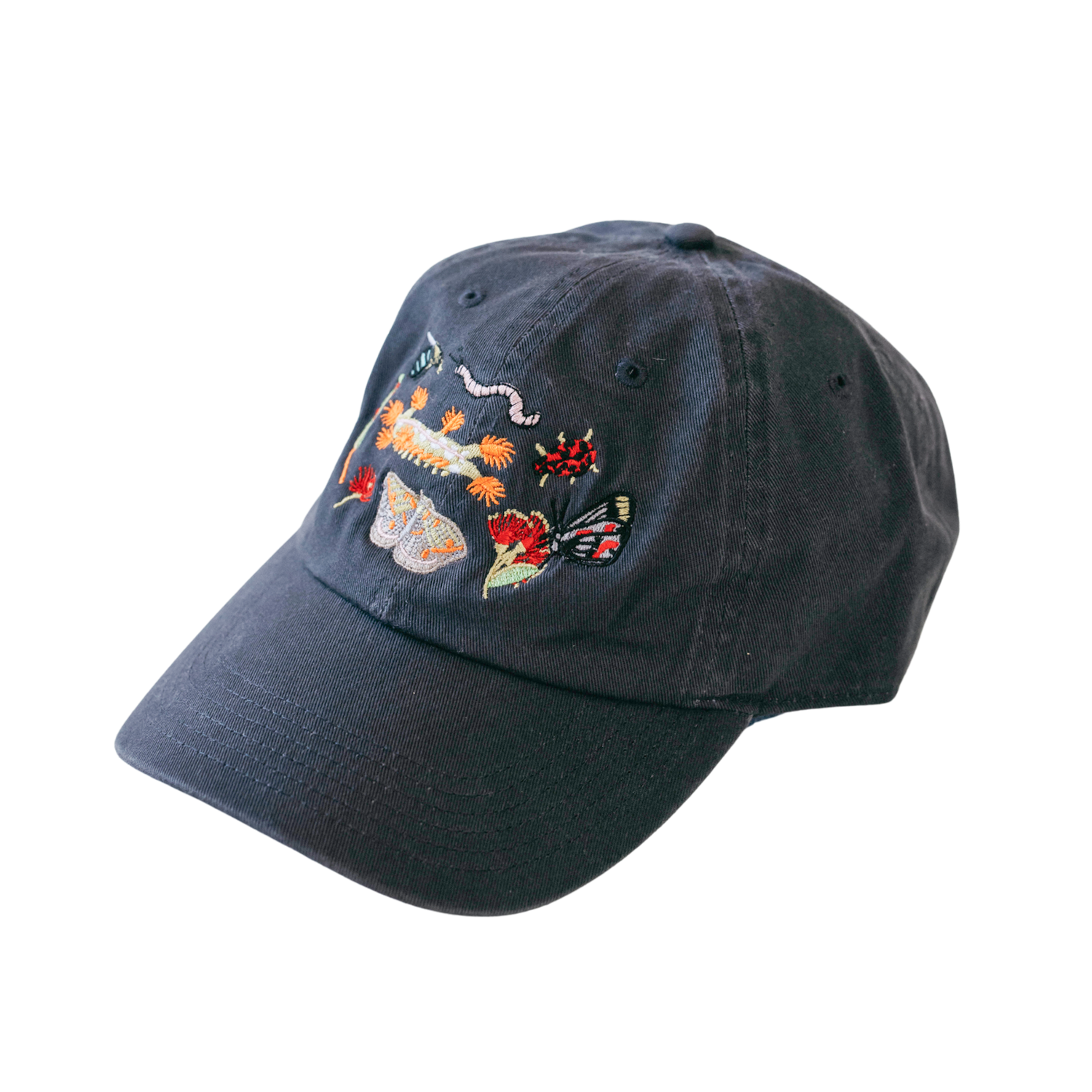 Caps designed by Claire Mosley featuring original illustrations of Australian flora and fauna. They’re made from 100% cotton and finished with locally made embroidery in Melbourne. One size fits all.