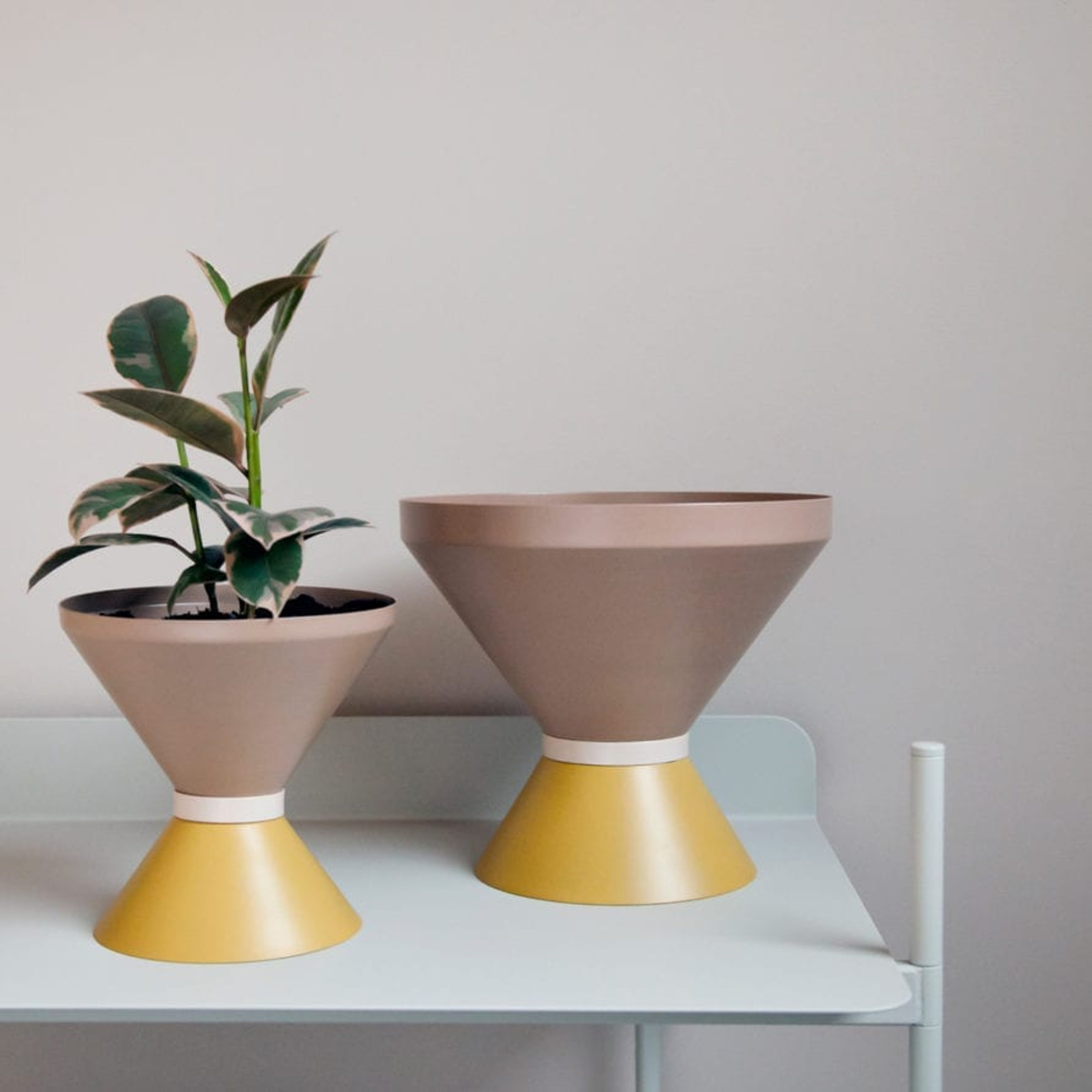 Australian designed tone vessel made from spun metal, powder coated and ideal for planters or sculptural vases with an indoor or outdoor use. Designed by Cindy-Lee Davies for Lightly in 2018.