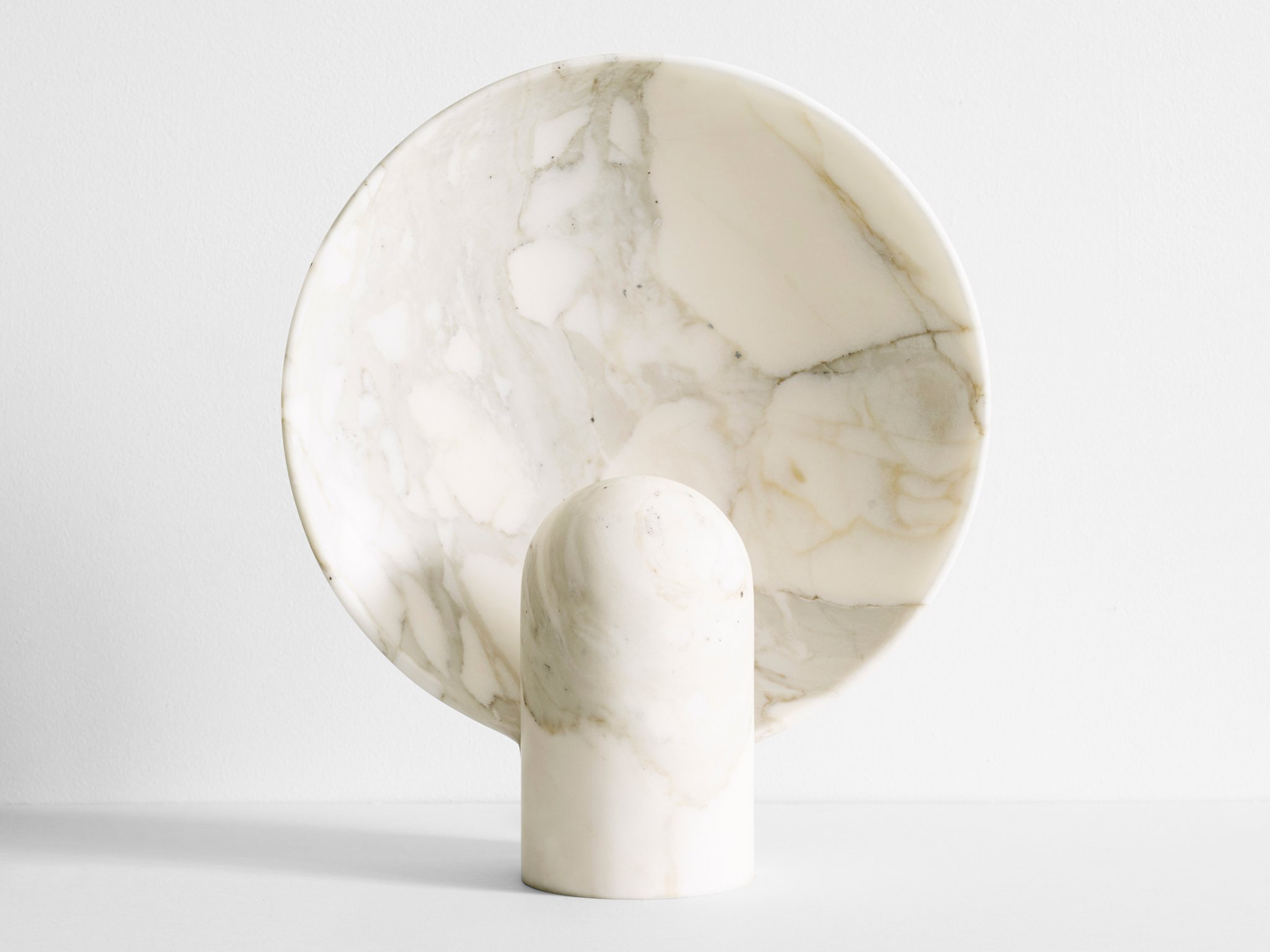 The Surface Sconce in Calacatta Marble is an ambient, sculptural light carved in two halves from solid stone.
