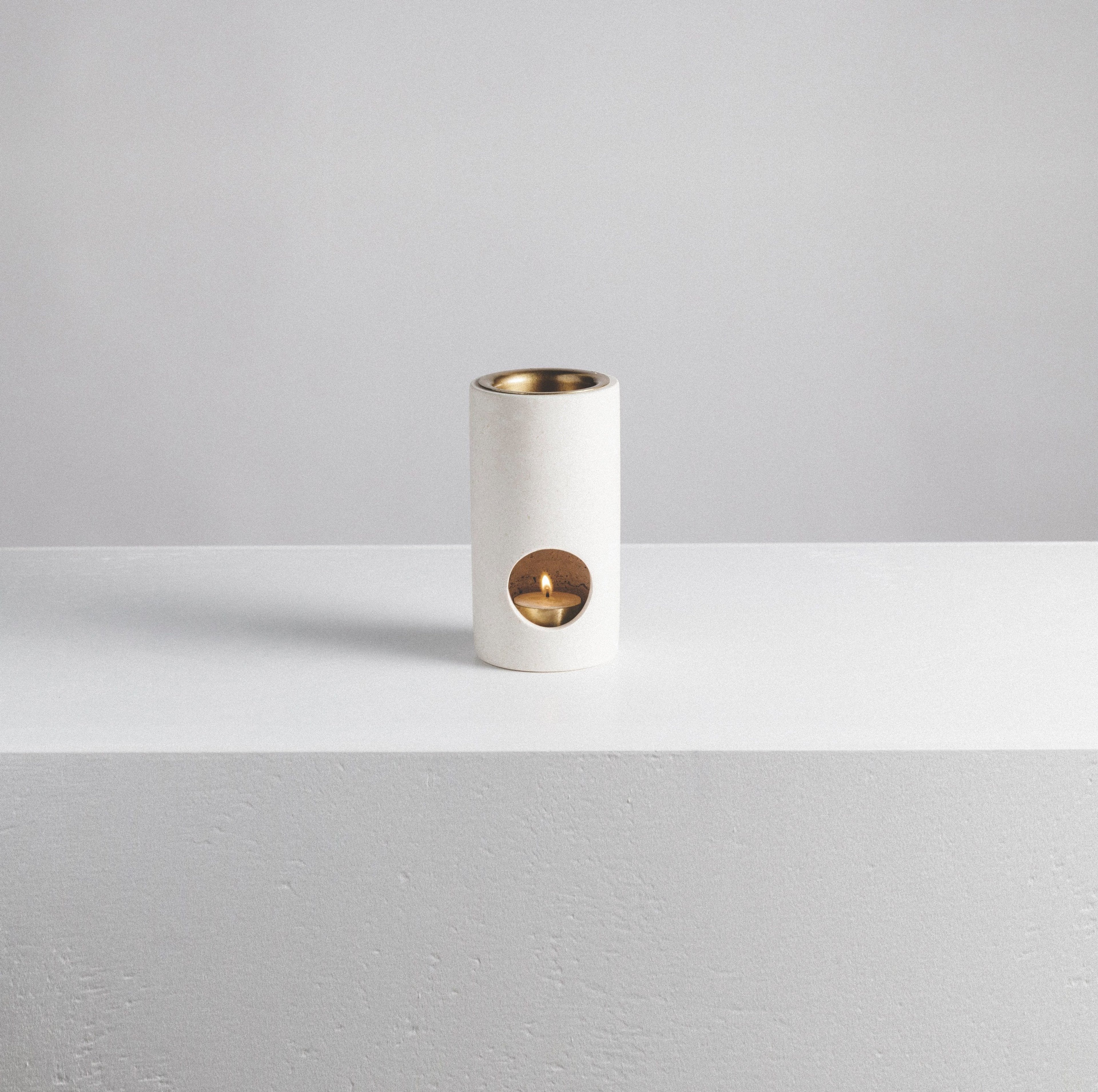 Designed with a minimal aesthetic the Limestone Synergy Oil Burner features a brass dish and tea light holder. The designer oil burner is carved from a solid piece of stone and includes an Essential Oil & Australian beeswax candle. As this product is carved from natural stone each piece will be different. We love this.