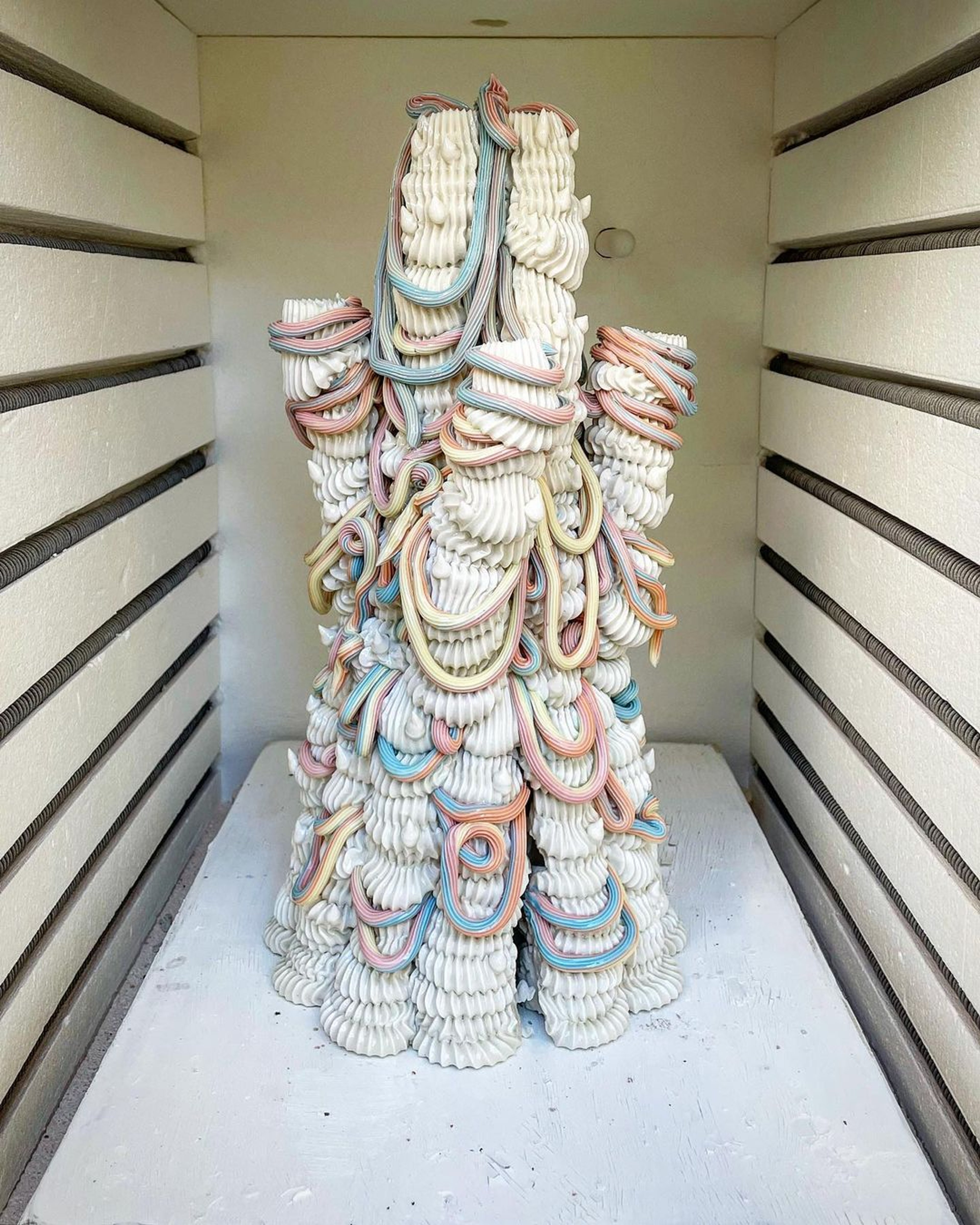Whipped cream, mont blanc, tiaras and butterflies. Oozing the childhood nostalgia of an Australian preteen girl; Ebony sculpts messages of familiarity, desire and vulnerability. Sickly sweet caricatures of the feminine adolescence brings a kitschy humour to heavier messages of the societal paradigm of gender. When asked about what emotions she tries to evoke, Ebony replied with “Longing, desire, lust. The way that we crave things, objects, flavour. I want to tap into those feelings.”