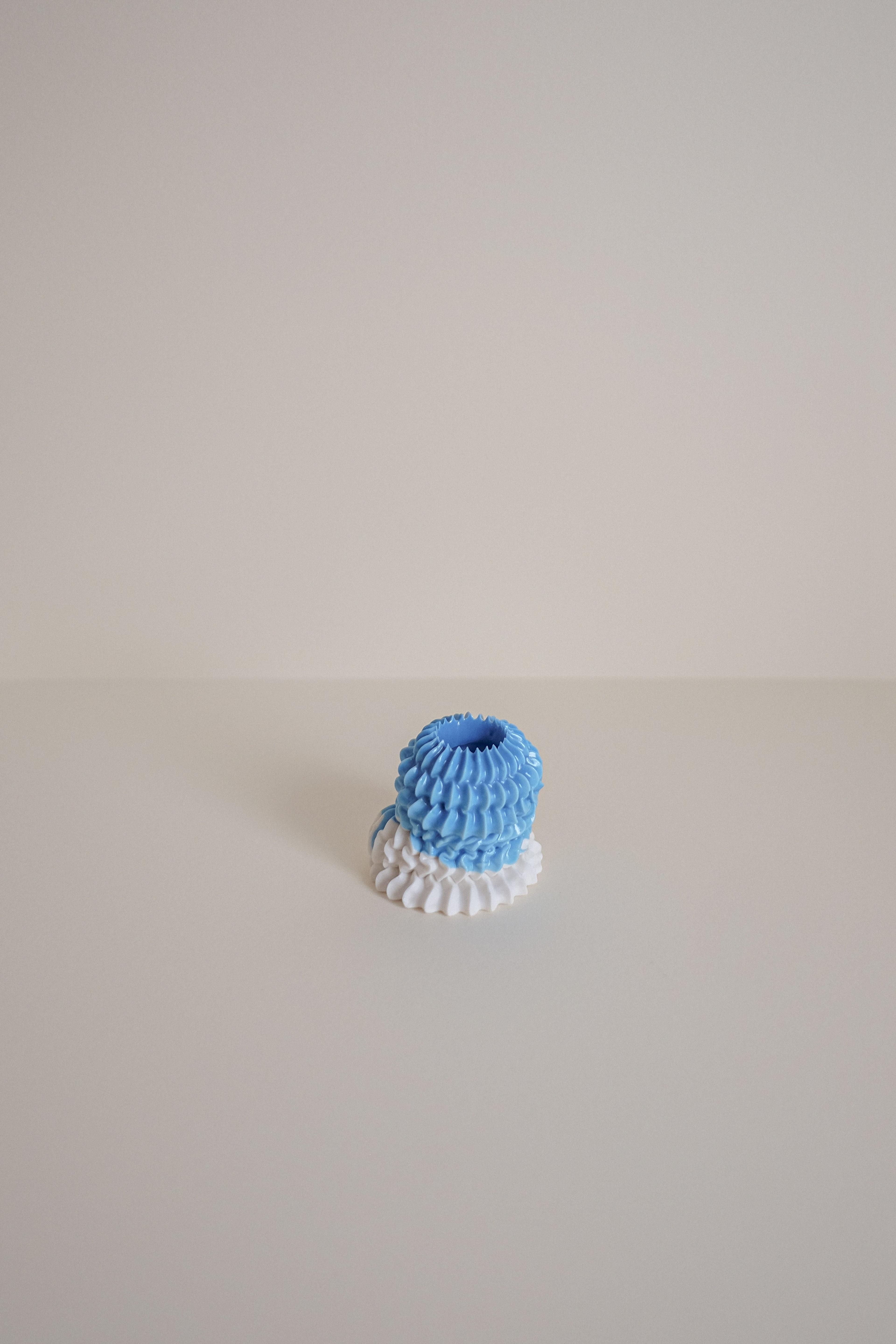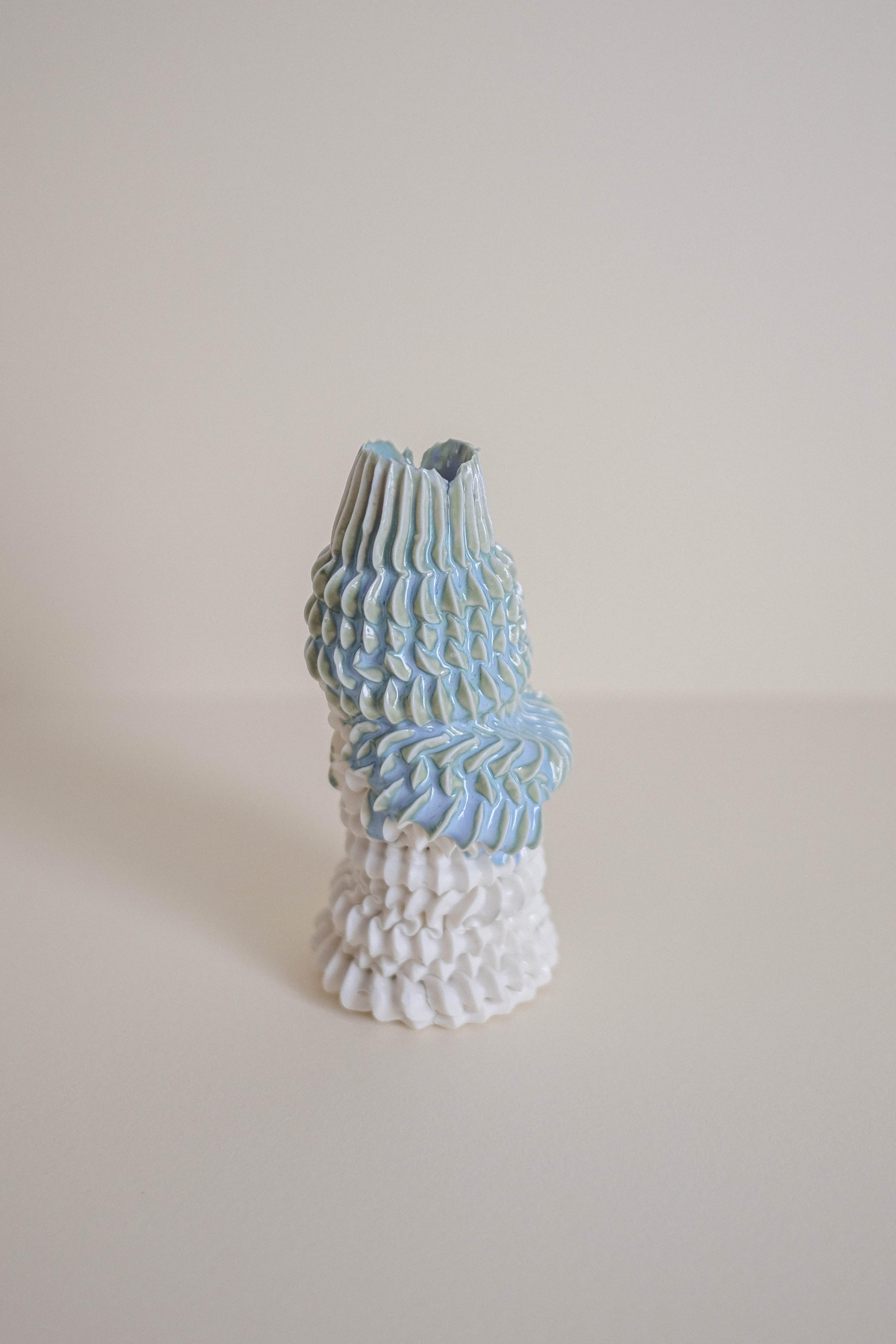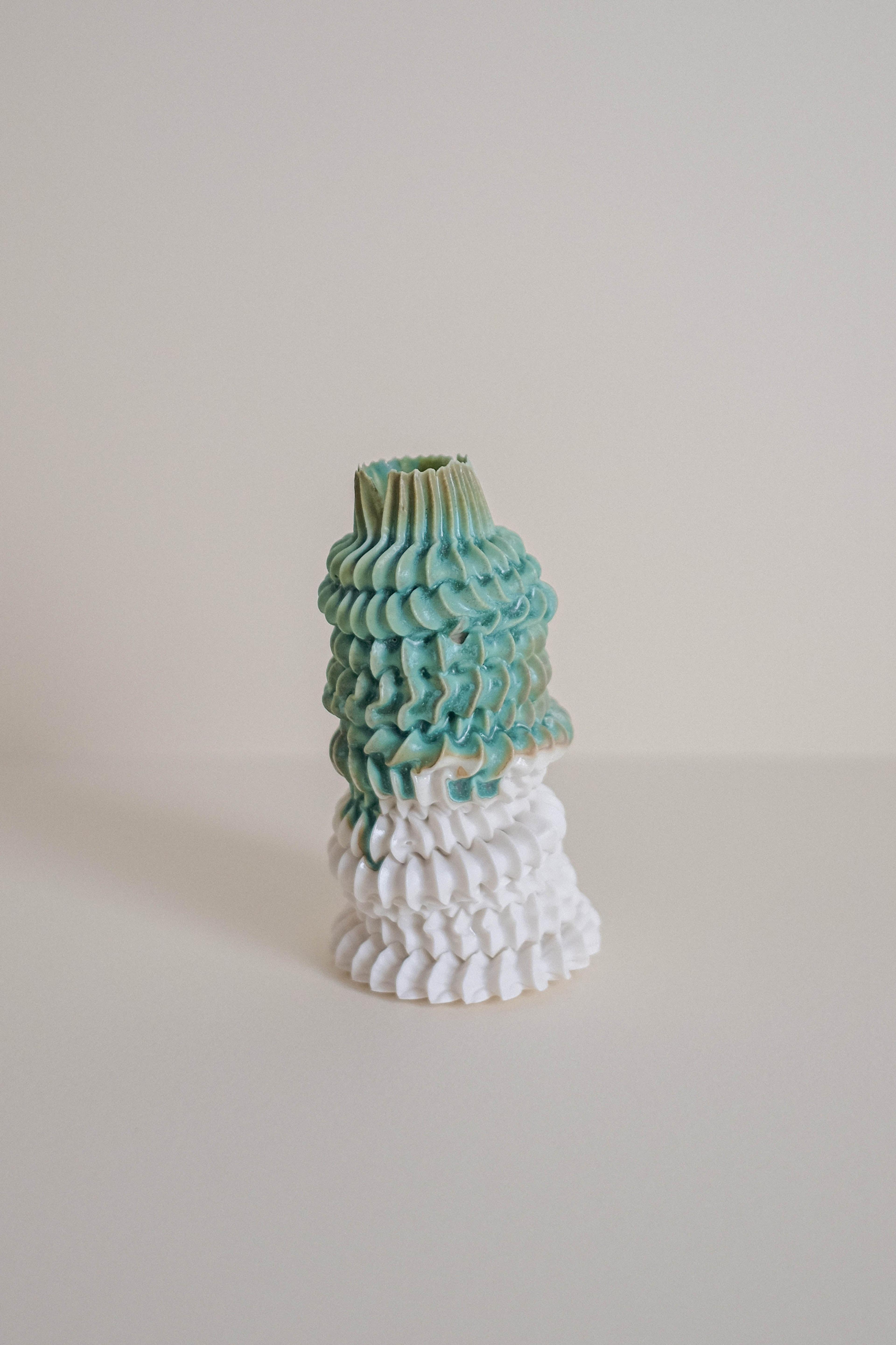Like the name Piped Dream suggests, Ebony’s distinct whipped cream textures are all created with the help of a piping bag. Using her piping bag as you would when icing a cake, she forms fluid shapes through layers upon layers of piped swirls void of any base structure. Referring to her free-handed approach, Ebony explained her design process saying that “I'll have a loose idea of the shape but need to respond to the way that the pieces move and grow with each layer”. No one piece follows a strict formula but rather like the fortuitous results of the ceramics medium, the joy comes from the unique outcome of each creation.
