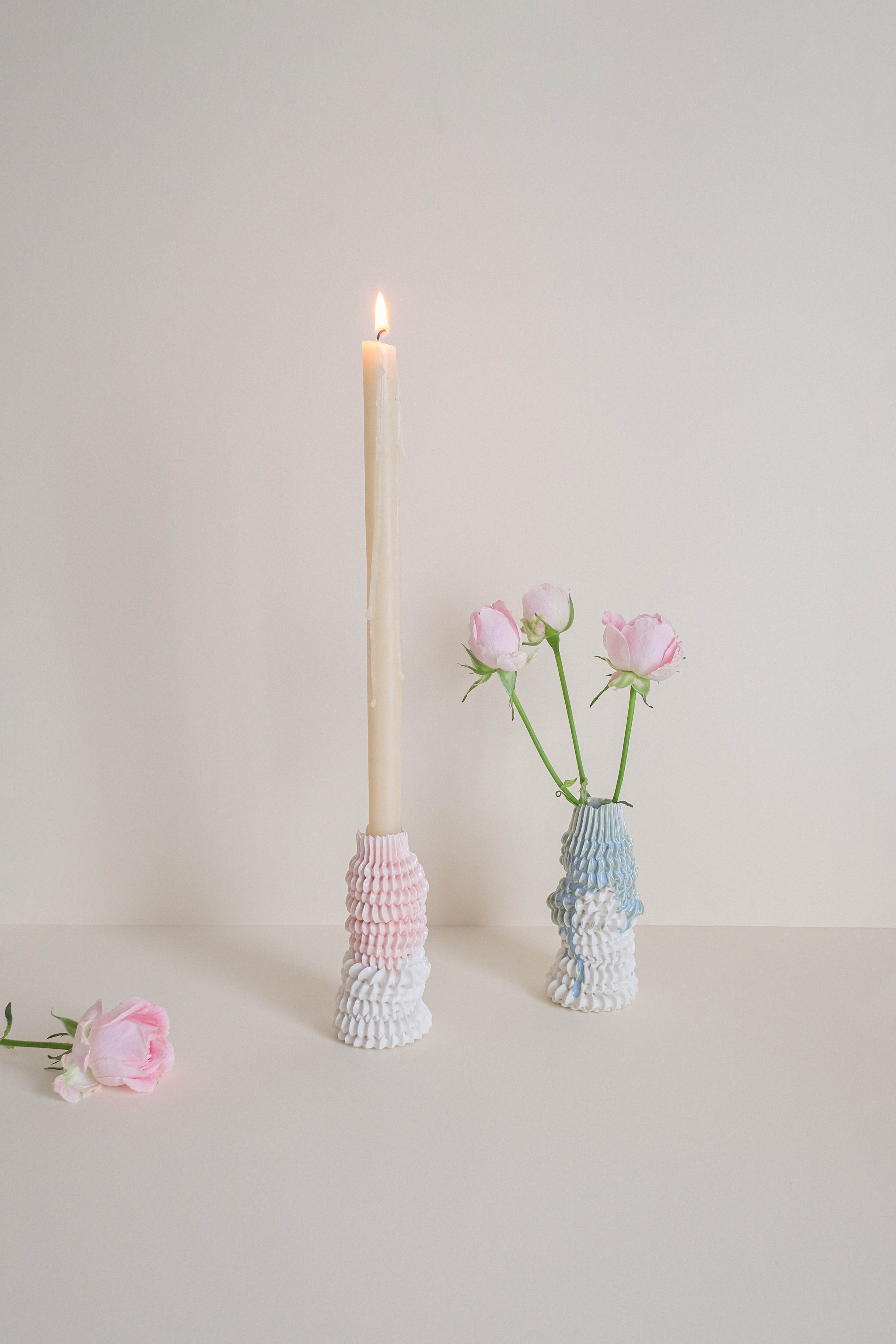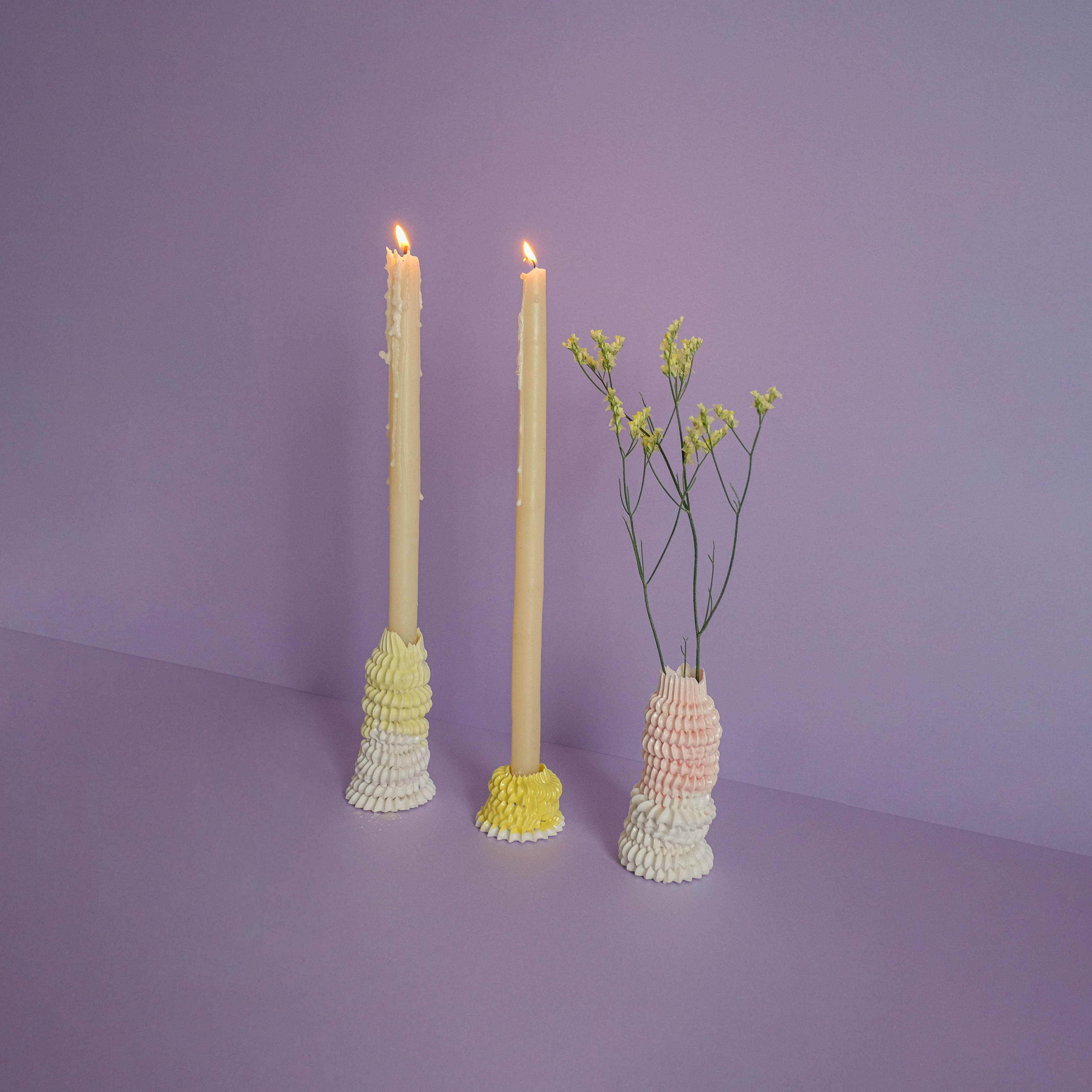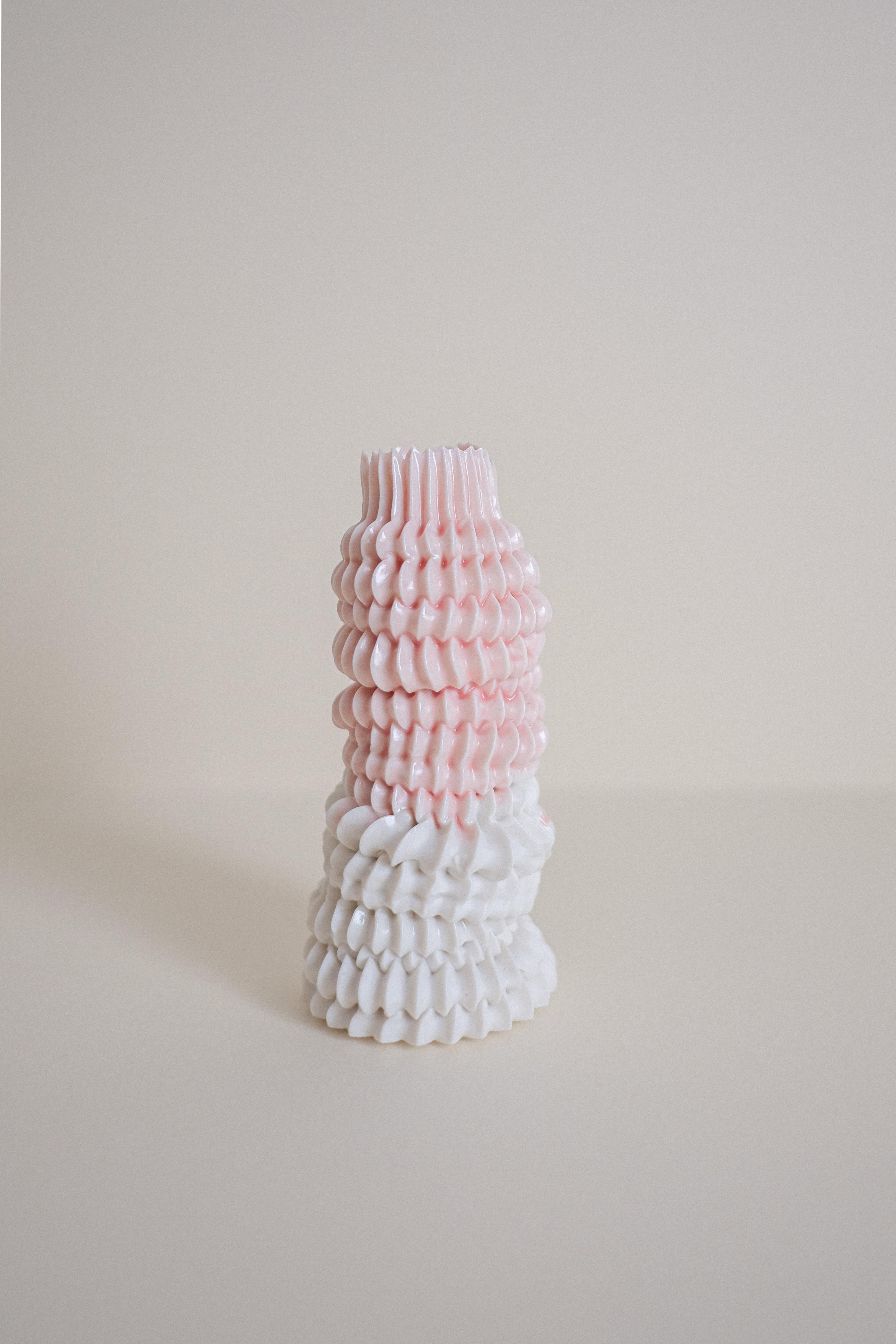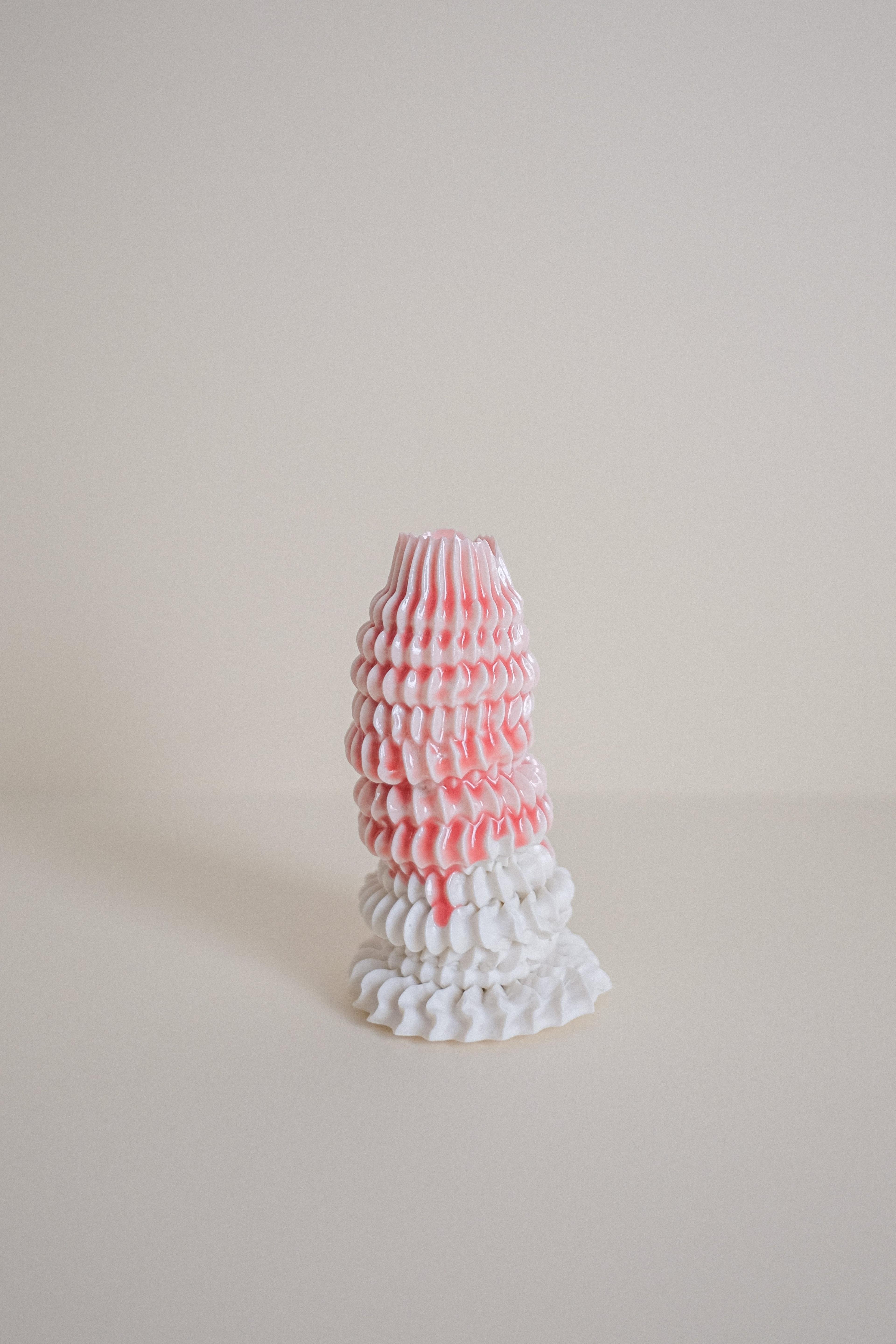 Like the name Piped Dream suggests, Ebony’s distinct whipped cream textures are all created with the help of a piping bag. Using her piping bag as you would when icing a cake, she forms fluid shapes through layers upon layers of piped swirls void of any base structure. Referring to her free-handed approach, Ebony explained her design process saying that “I'll have a loose idea of the shape but need to respond to the way that the pieces move and grow with each layer”. No one piece follows a strict formula but rather like the fortuitous results of the ceramics medium, the joy comes from the unique outcome of each creation.