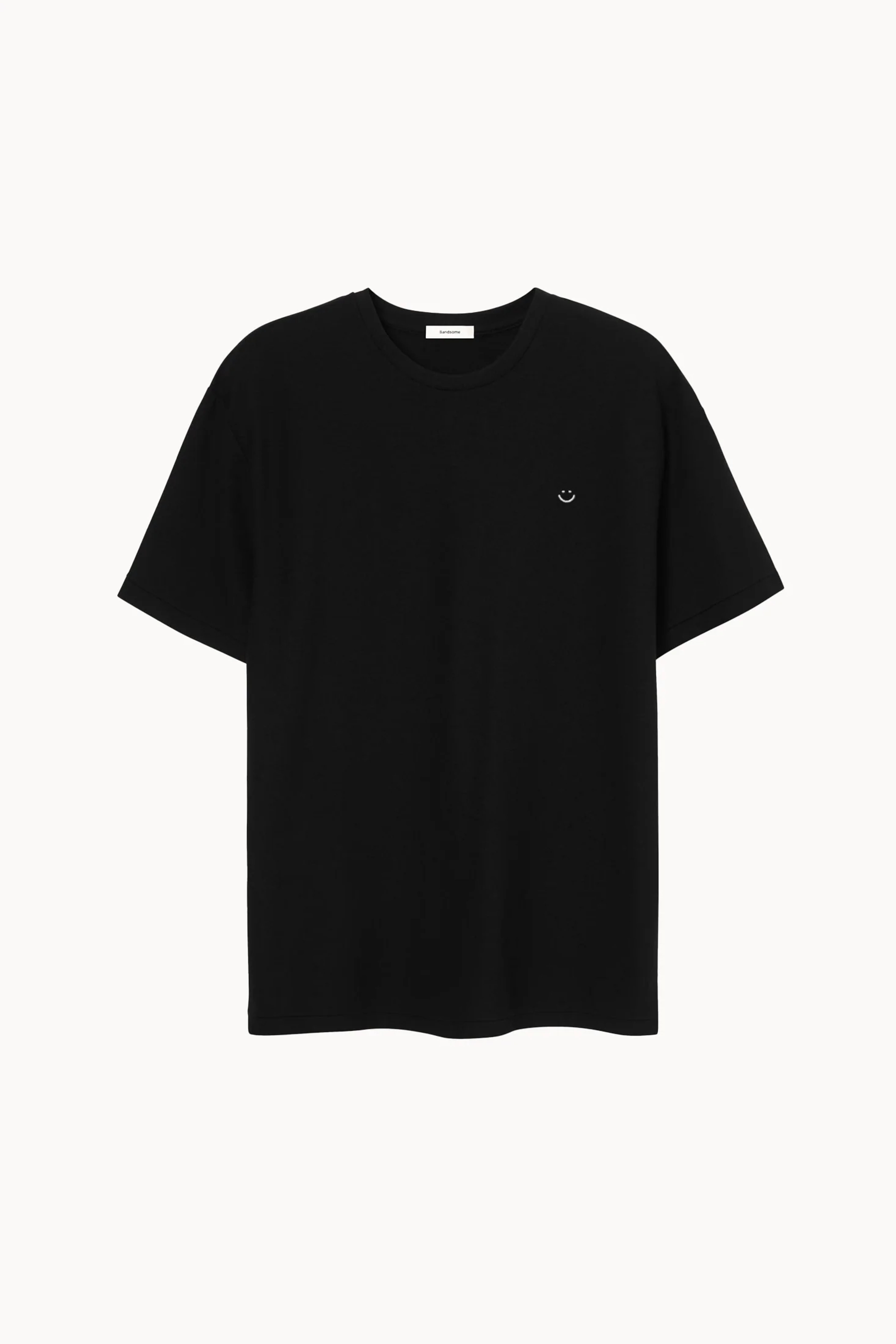 プレミアムなリラックスフィットのTシャツ。袖口と裾にブラインドステッチを施し、細部にまでこだわって仕上げられている。クラシックなポロシャツ生地のようなテクスチャー感のある、特注のオーガニックコットンピケを使用。シグネチャーのスマイリーマークが刺繍されています。