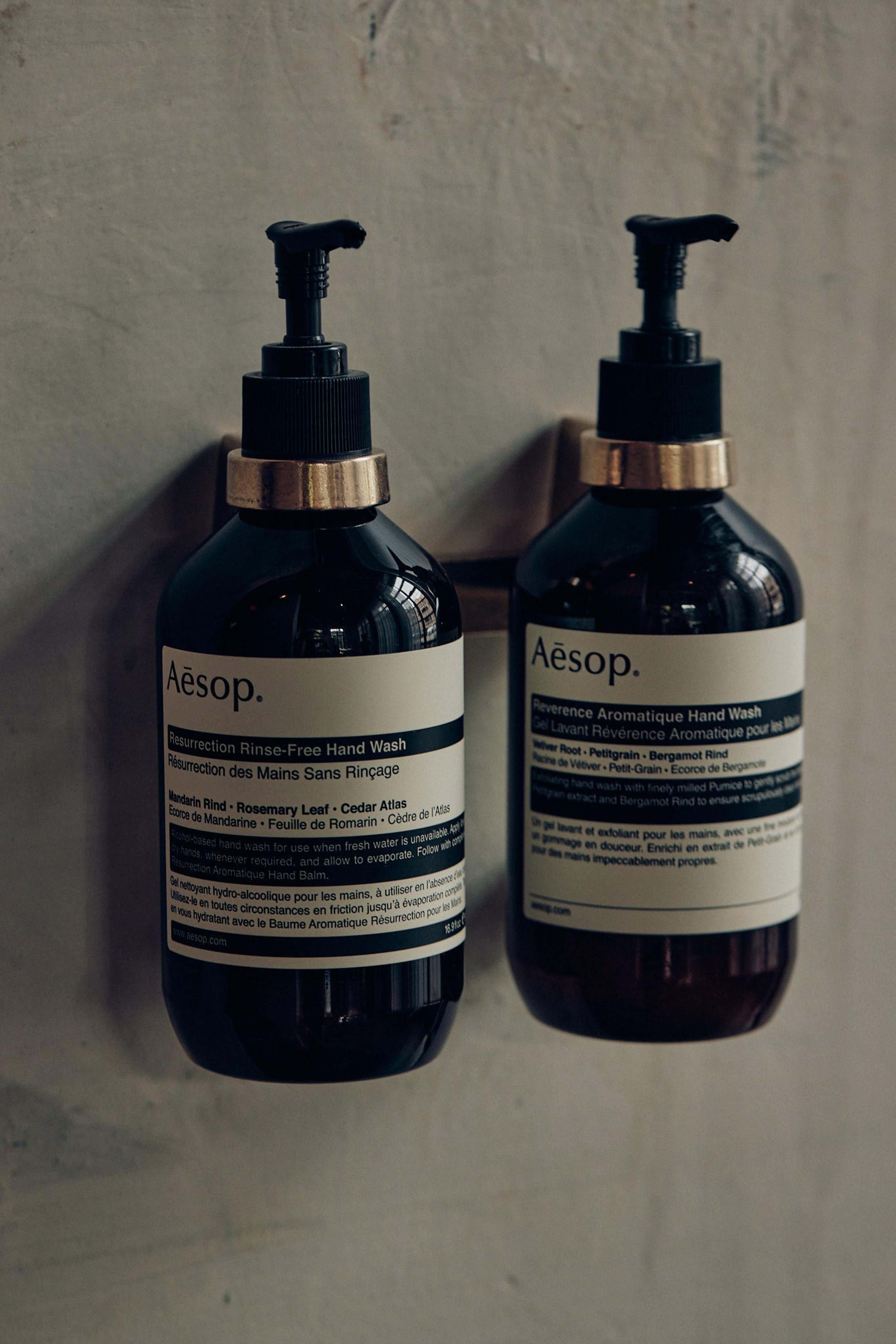 手作業で型に注がれたアルミニウムの Aesop Bottle Holder は Aesop のブラスオイルバーナーをデザインしたヘンリー・ウィルソンがデザインしています。ヘンリー・ウィルソンは Aesop と親しい関係でありシドニーの店舗のインテリアをデザインしました。