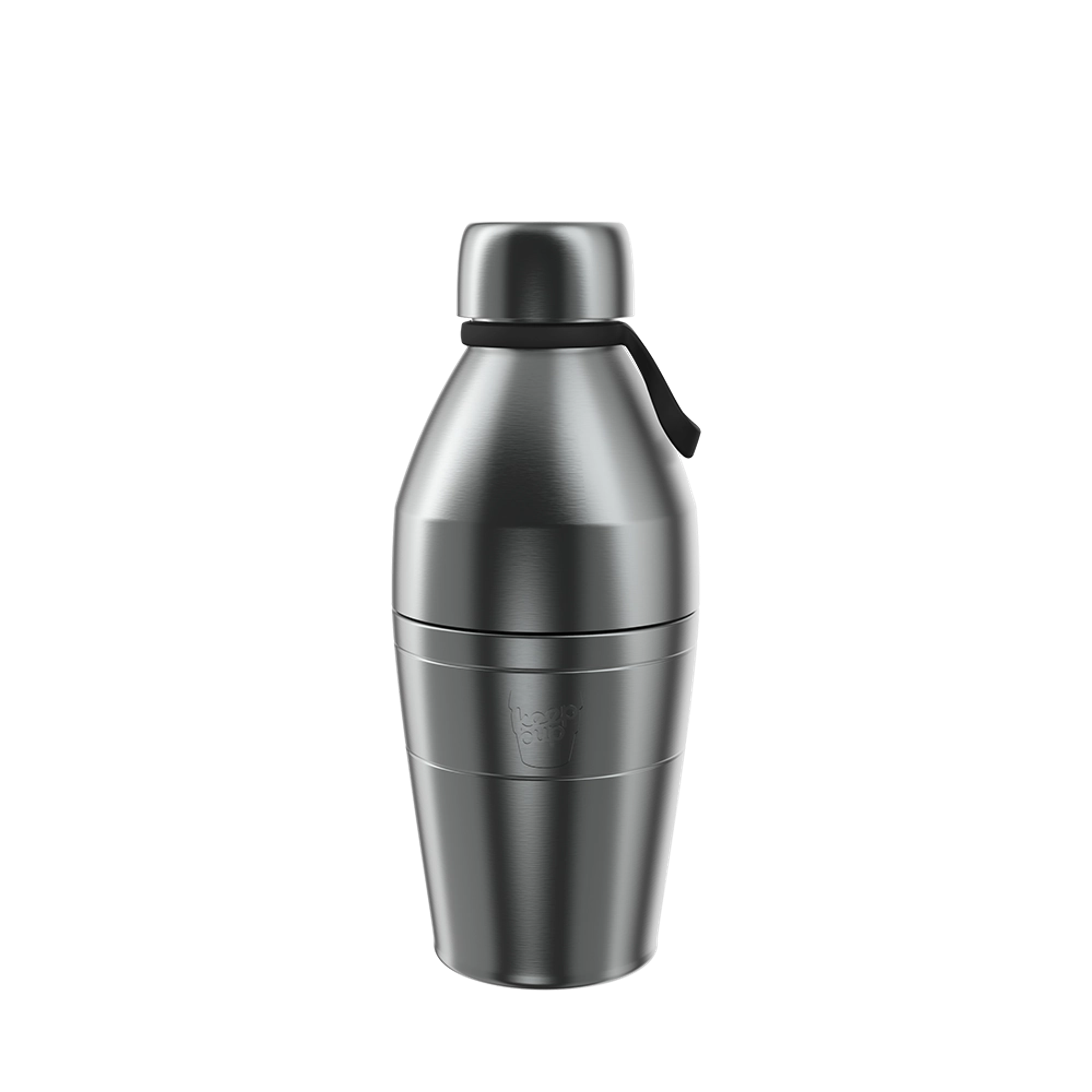 二層構造の断熱ステンレスで作られた Helix Thermal Bottle を真ん中で分けると、フルーツや氷、タピオカなど、あらゆるものを入れることができます。
