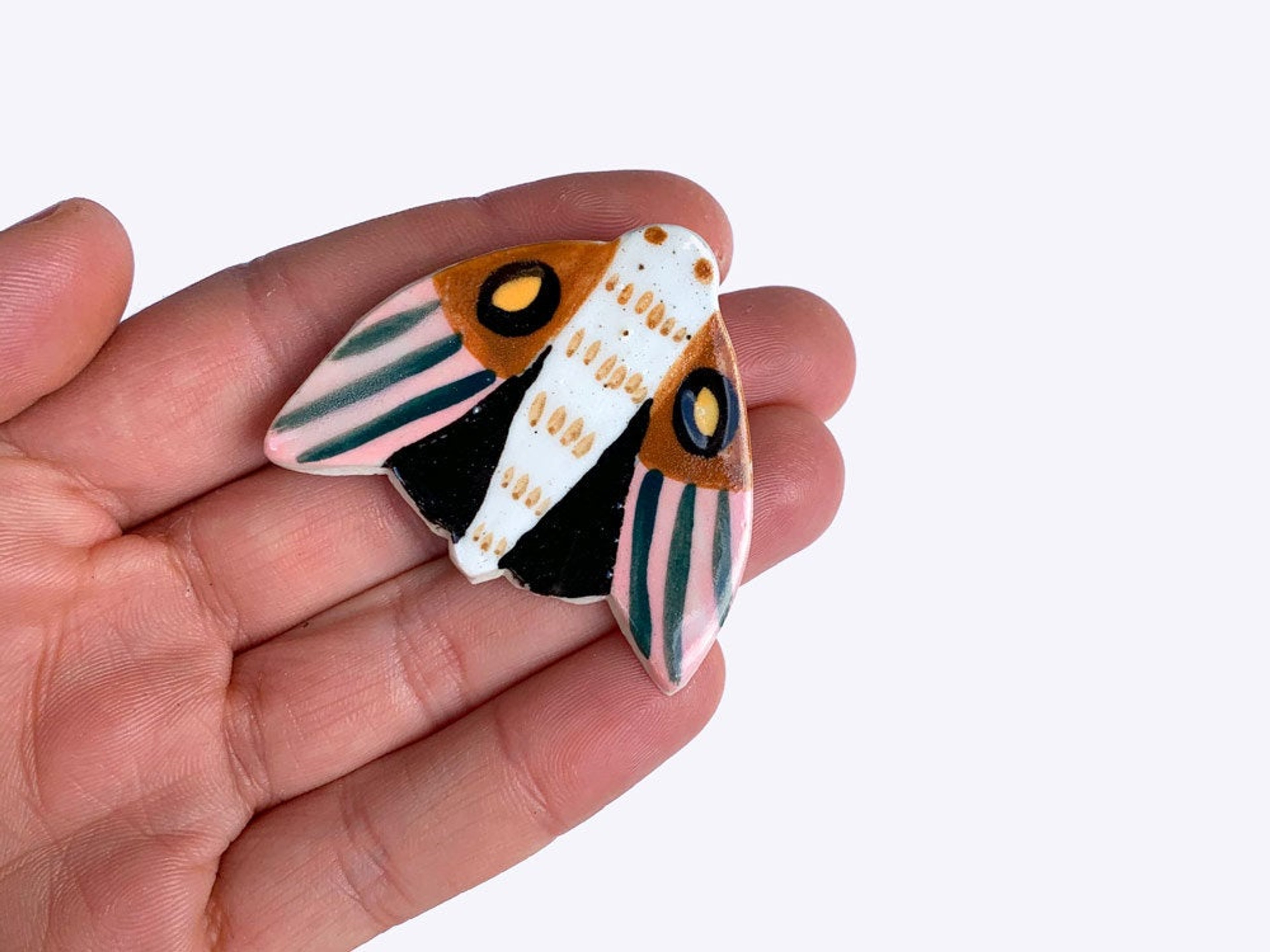 手作りのブローチはセラミック製で、あなたの装いに彩りを添えます。裏面にはシルバーの金属製の留め具が付いています。陶器はすべて手作業で作られているため、形や色が写真と若干異なる場合があります。