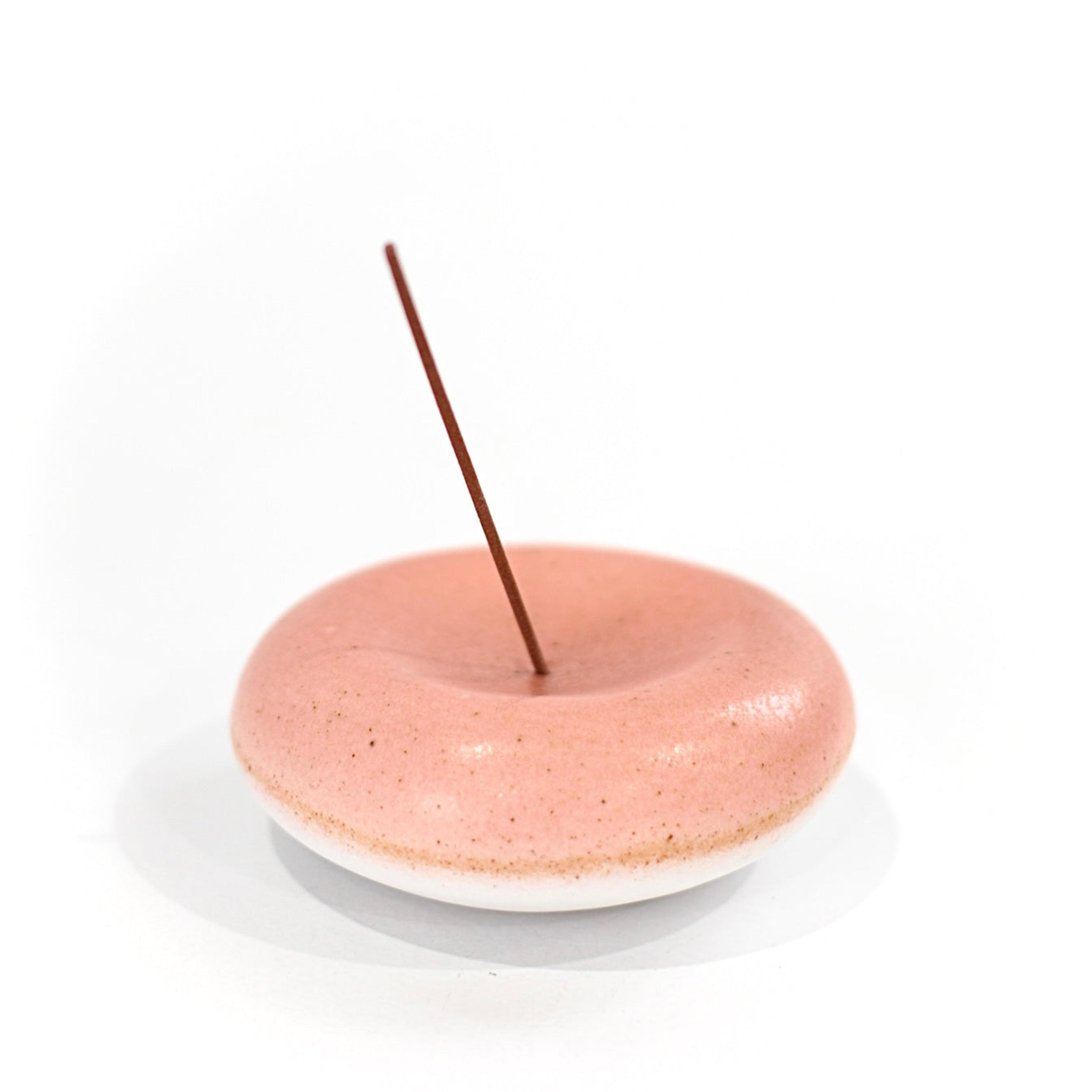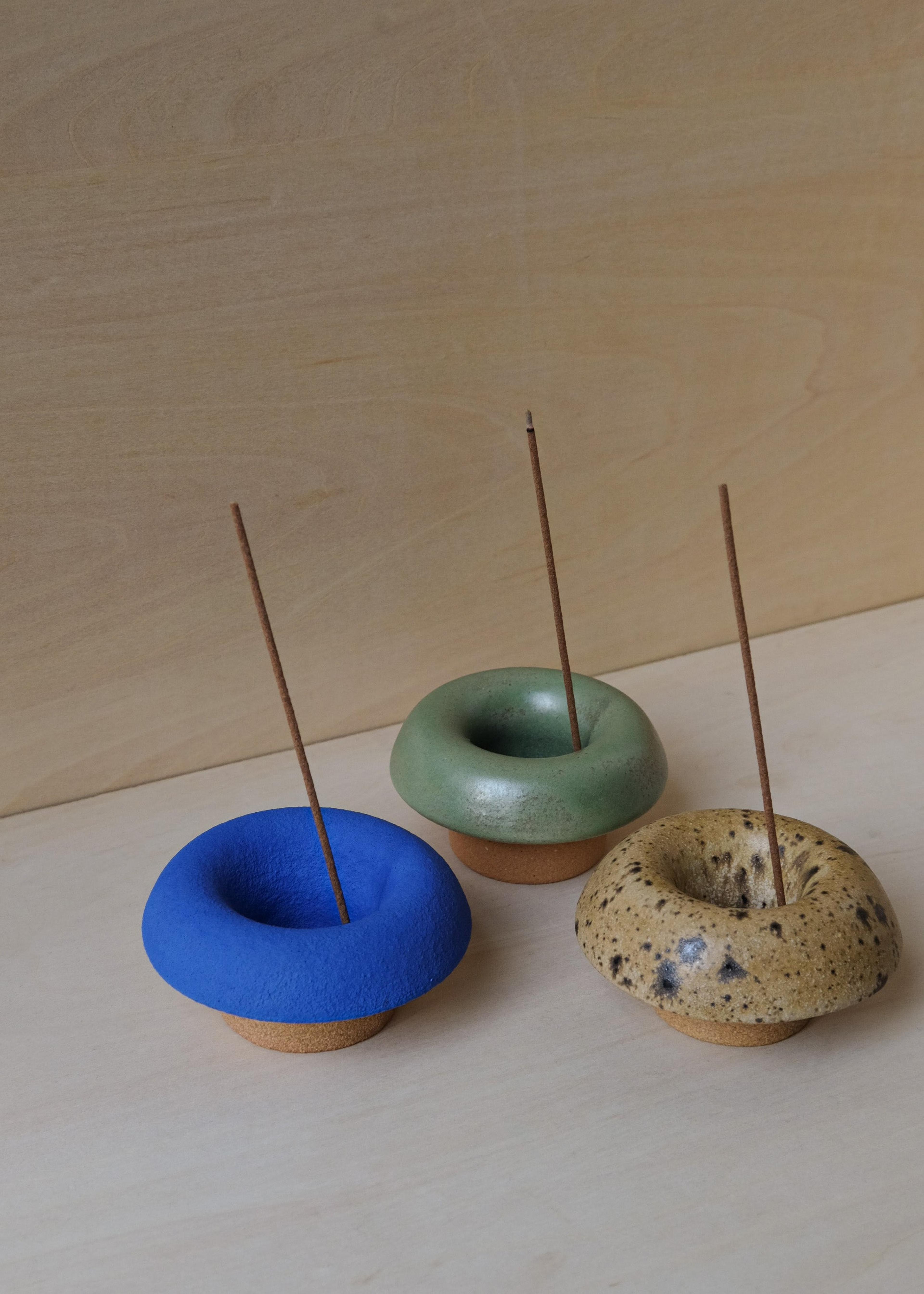 このドーナツ型のお香立ては、とろけるような美しい釉薬が特徴で、現代的な形によってスティックタイプのパロサントホルダーやアクセサリー置きとしても重宝します!
