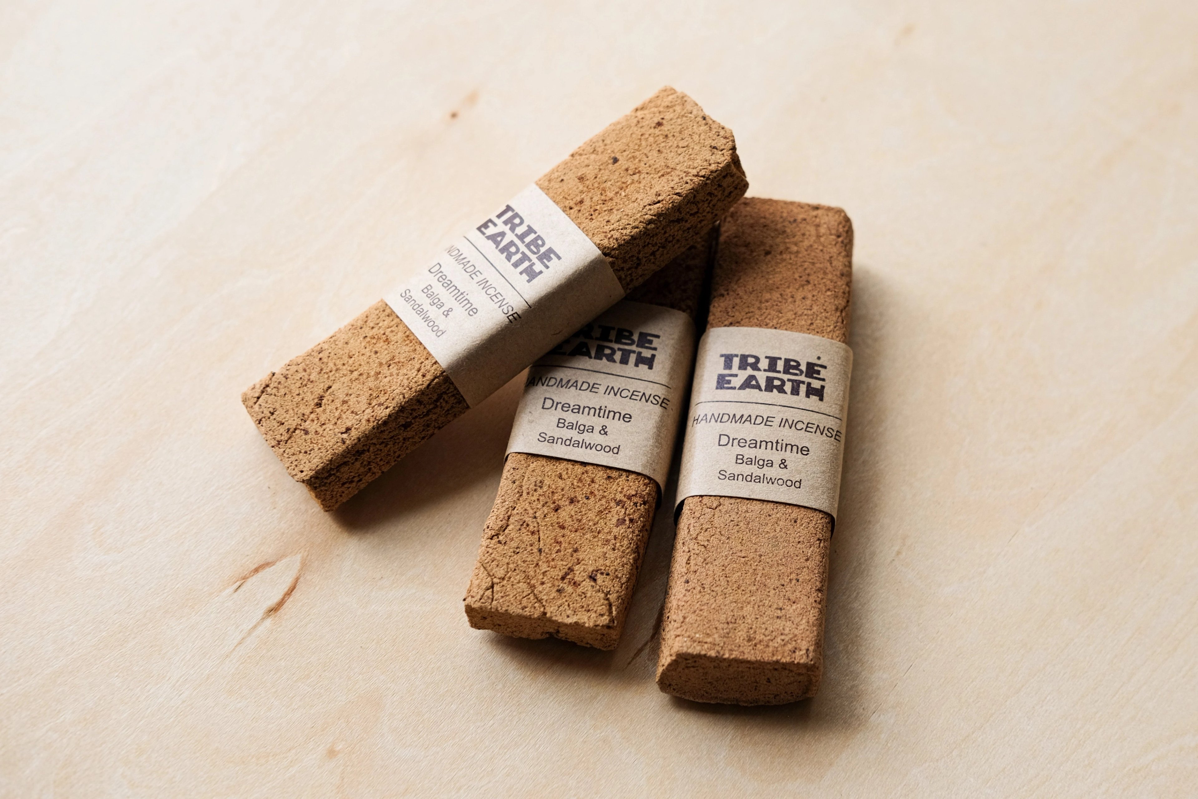 Tribe Earth(トライブ アース)の手作りのお香は天然のオーストラリアの木々と樹脂を混ぜ合わせ、分厚い板を棒状に形成したユニークな形をしていています。全ての材料を手で混ぜ、形作り、そしてオーストラリア内陸地の暖かい太陽によって乾燥させています。