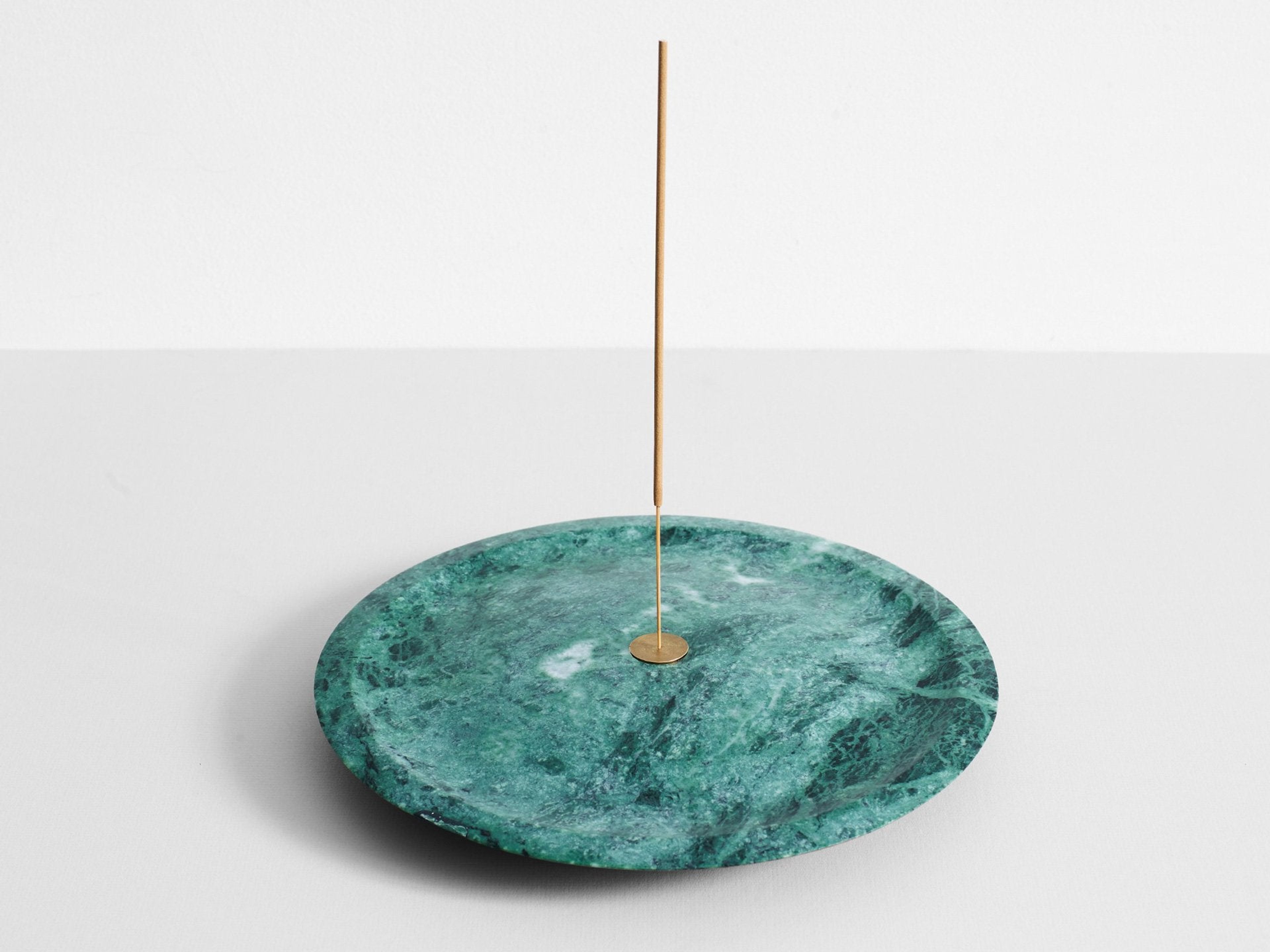 グアテマラ大理石で作られたインセンスホルダーです。中心部は真鍮で作られており、インセンスをがっちりと固定します。リバーシブルで裏表でサイズの異なる穴が開いている為、様々な太さのインセンスにご利用になれます。