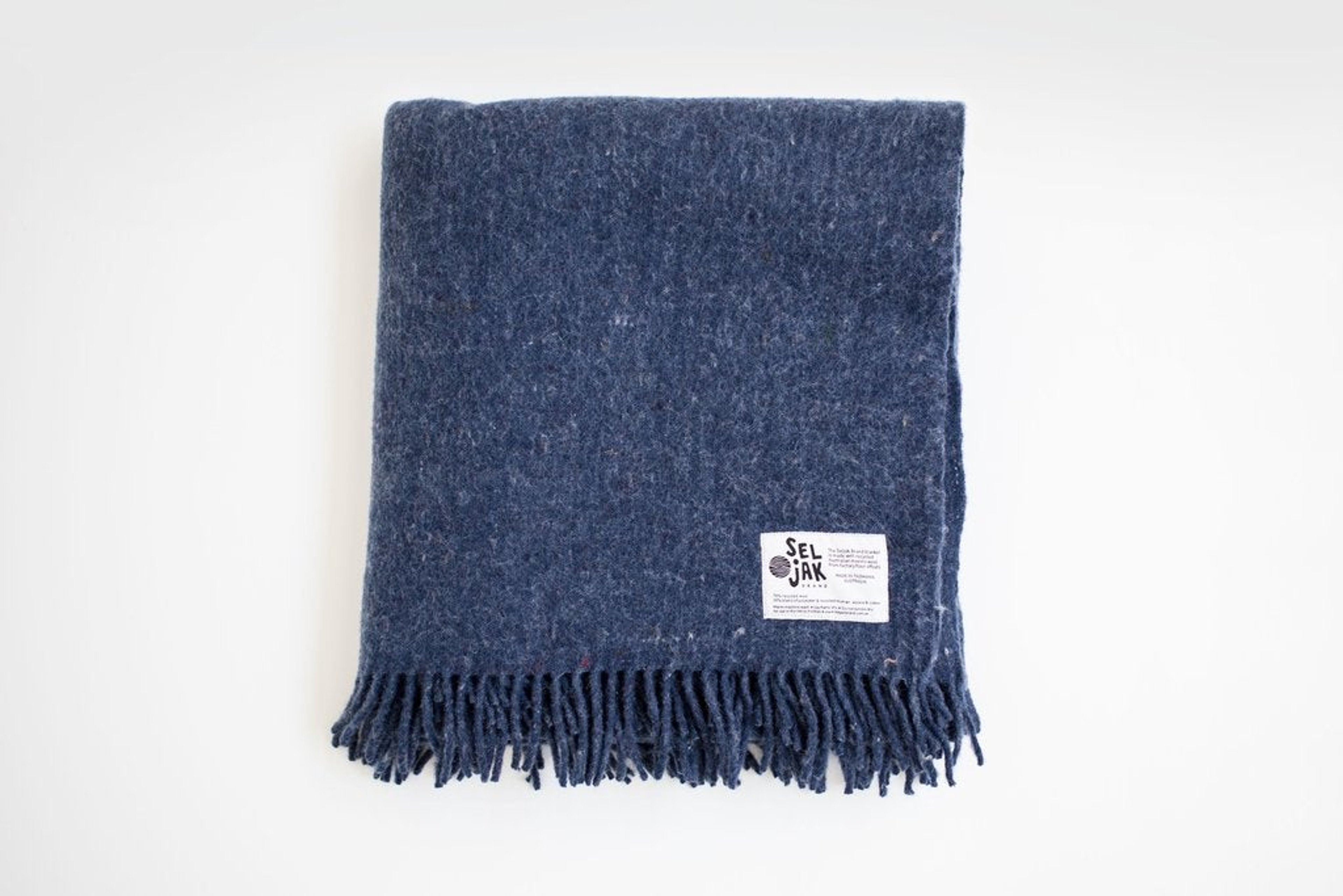 Indigo blanket は高級で耐久性のある毛布で、アウトドアにも家庭用としても、また、その他考えうるすべての用途としてご利用できます。基本的にはジーンズのような青色をしていますが、他の製品の加工残材をリサイクルして作られているためひとつひとつ色や触り心地などが微妙に異なります。