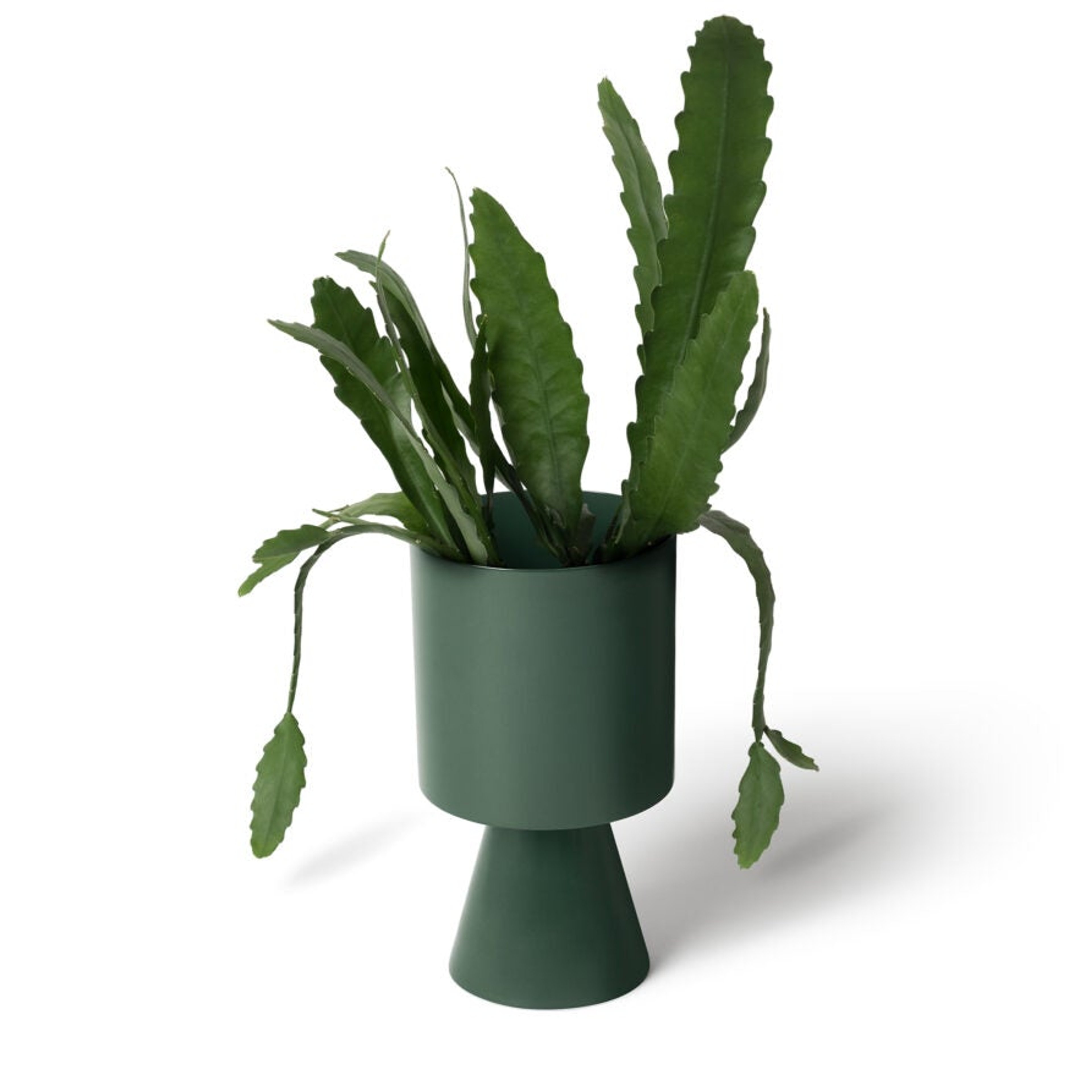 Palm Springs planterの色合いや形は、まるで自然界と人工的な世界の間を自由に旅しているかのようである。スピン加工された金属にパウダーコーティングを施して製作されている。室内でも屋外でも使用が可能だ。