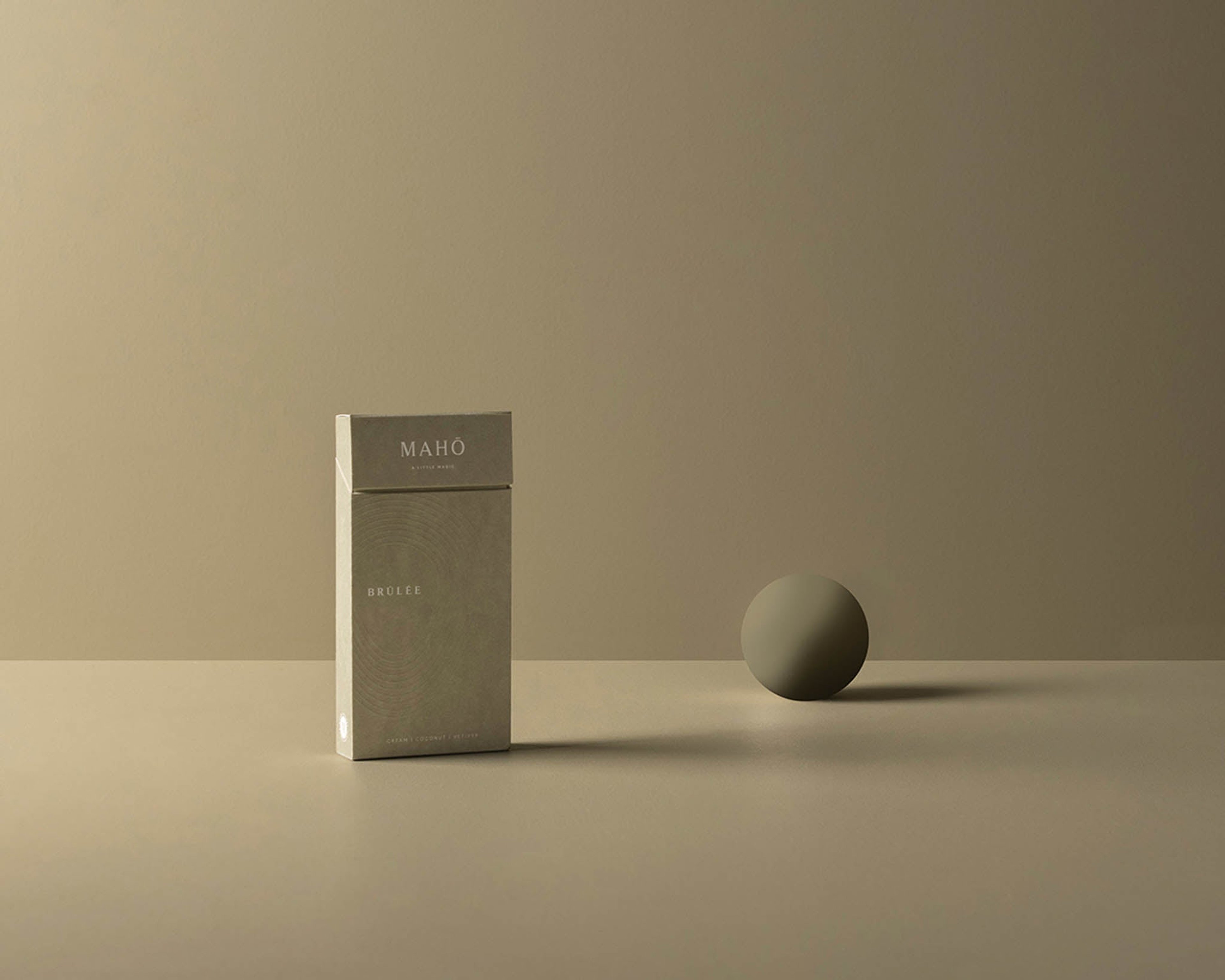 お香の先端に火をつけます。口で吹くか手で扇いで火を消してください。お香からは輝く残火が発され、そこから煙と共に香りが漂い出します。燻るお香を MAHŌのお香立てに立てかけて、あとはたっぷりとリラックスしてください。