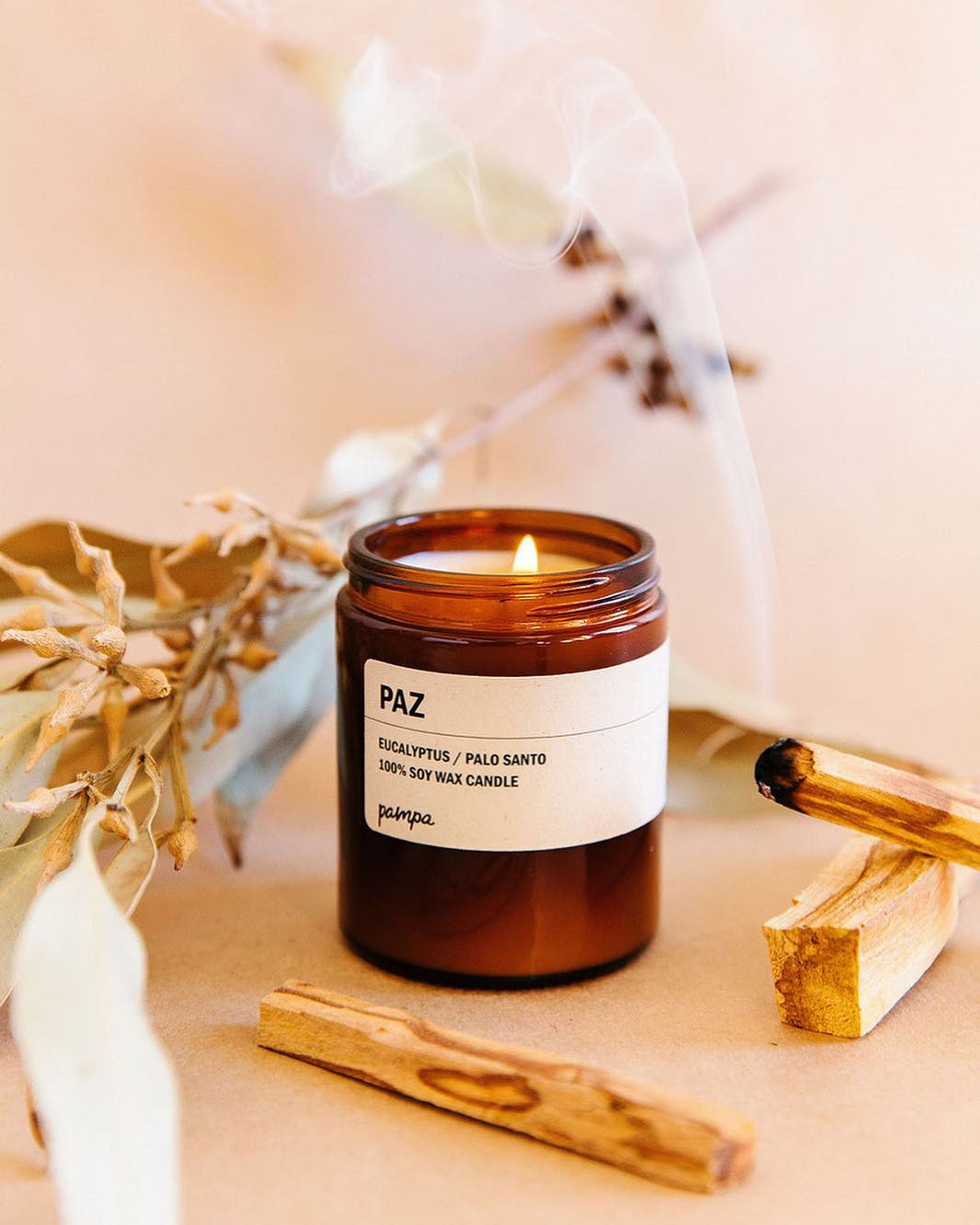 PAZはスペイン語で”平和”を意味しており、Pampaのハートとソウルを連想させるように作りました。アルゼンチンとオーストラリアの自然の要素を結びつけ、ピュアなユーカリと土っぽいパロサントをブレンドした香りです。