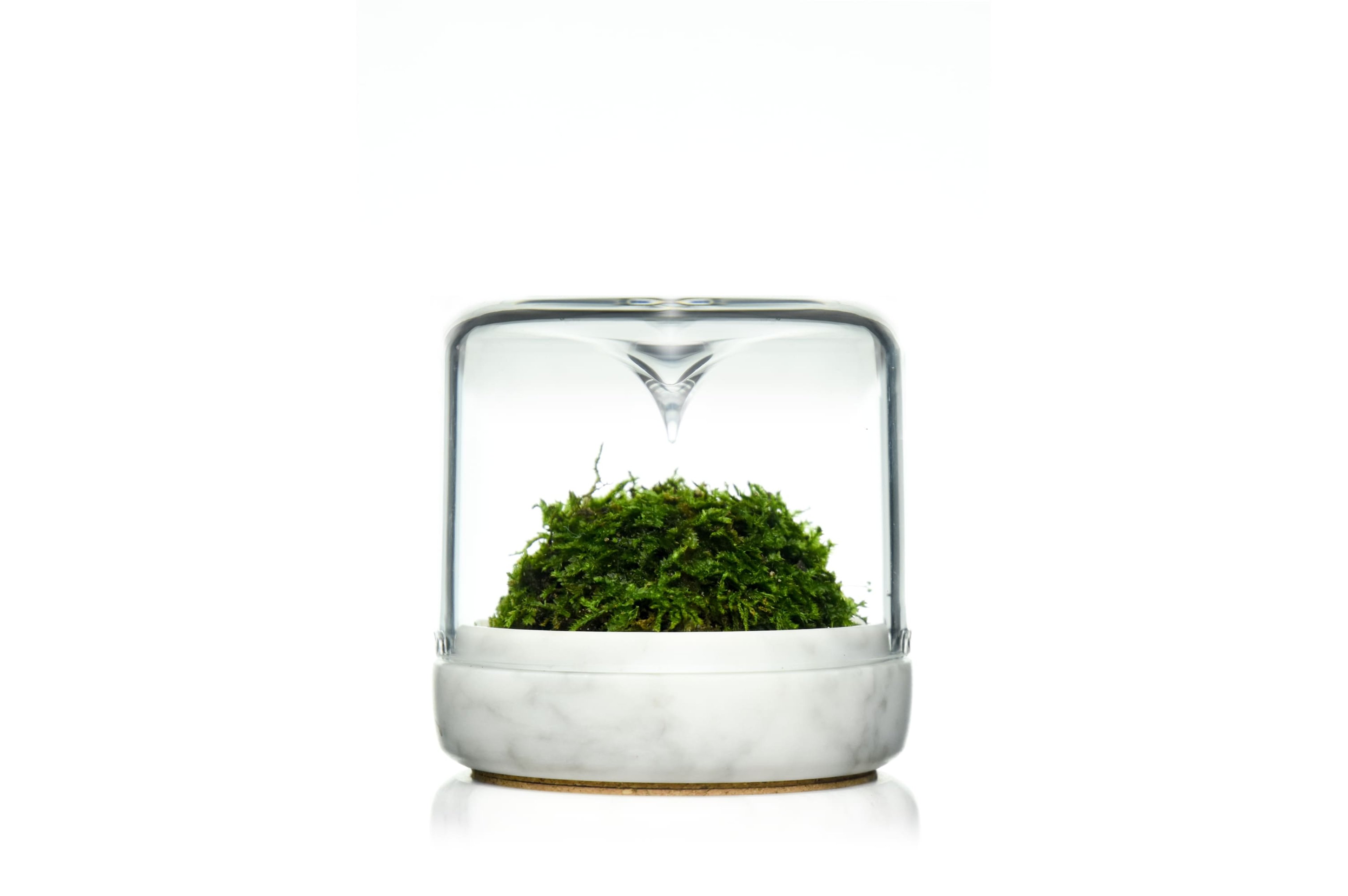 デスクに置くのにピッタリなテラリウム、Sanctuaryはカッラーラ大理石ベースにより長い帯水性を実現しました。パルダリウムやきのこリウムとしてもお勧めです。蒸発した水が雨となって地面へ戻ってくるかのように、トップ部分の水滴のような形状により結露が自然に葉に落ちて植物を潤します。サイドの通気システムにより、より細かな温度や湿度の管理が可能です。ベースは皿型なので土を溢さずに使用できます。このミニチュアな世界をお家、職場、または贈り物にいかがですか?