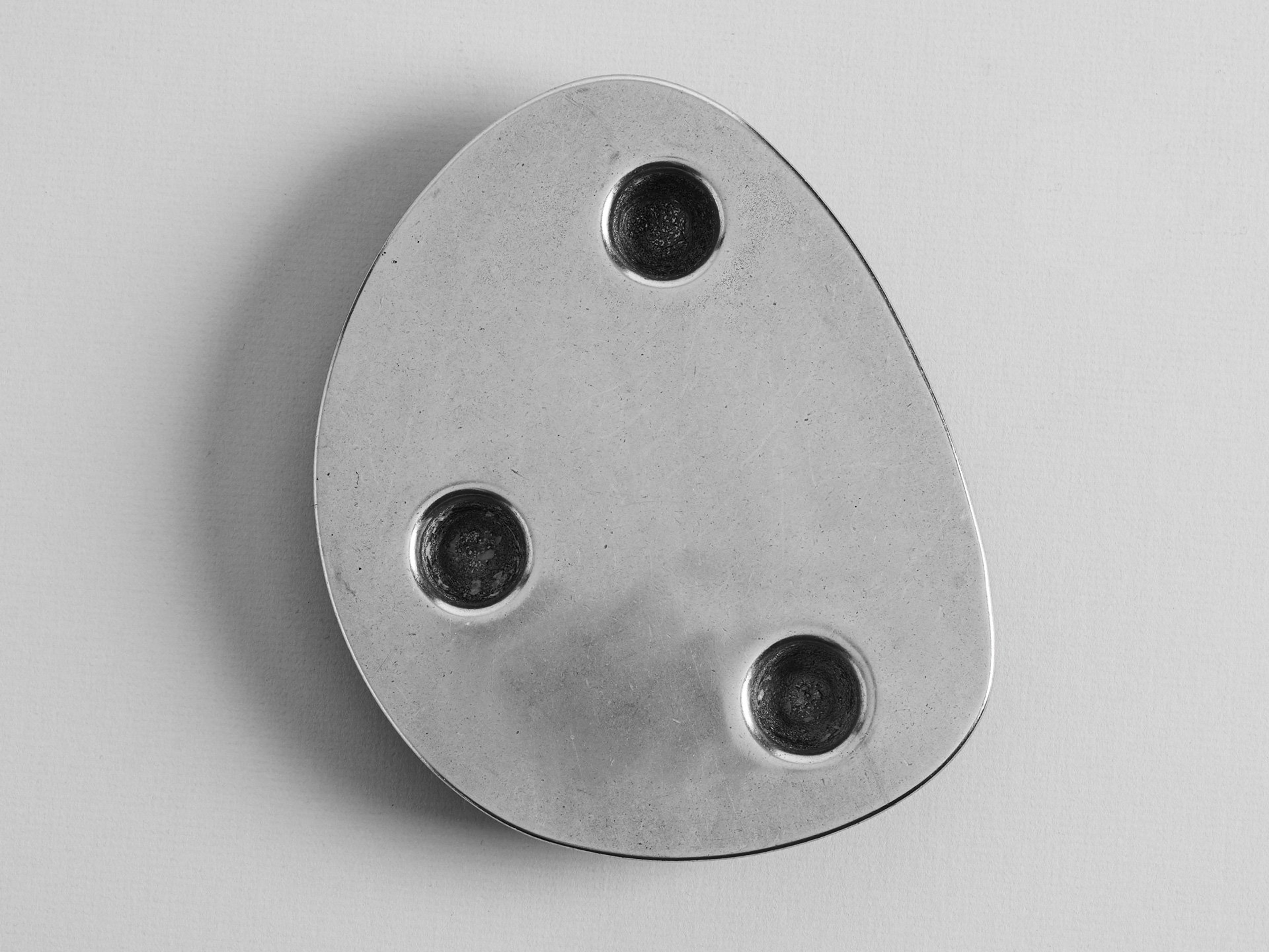 アルミニウムを型に注いで作られており、キャンドルを3本立てることができます。