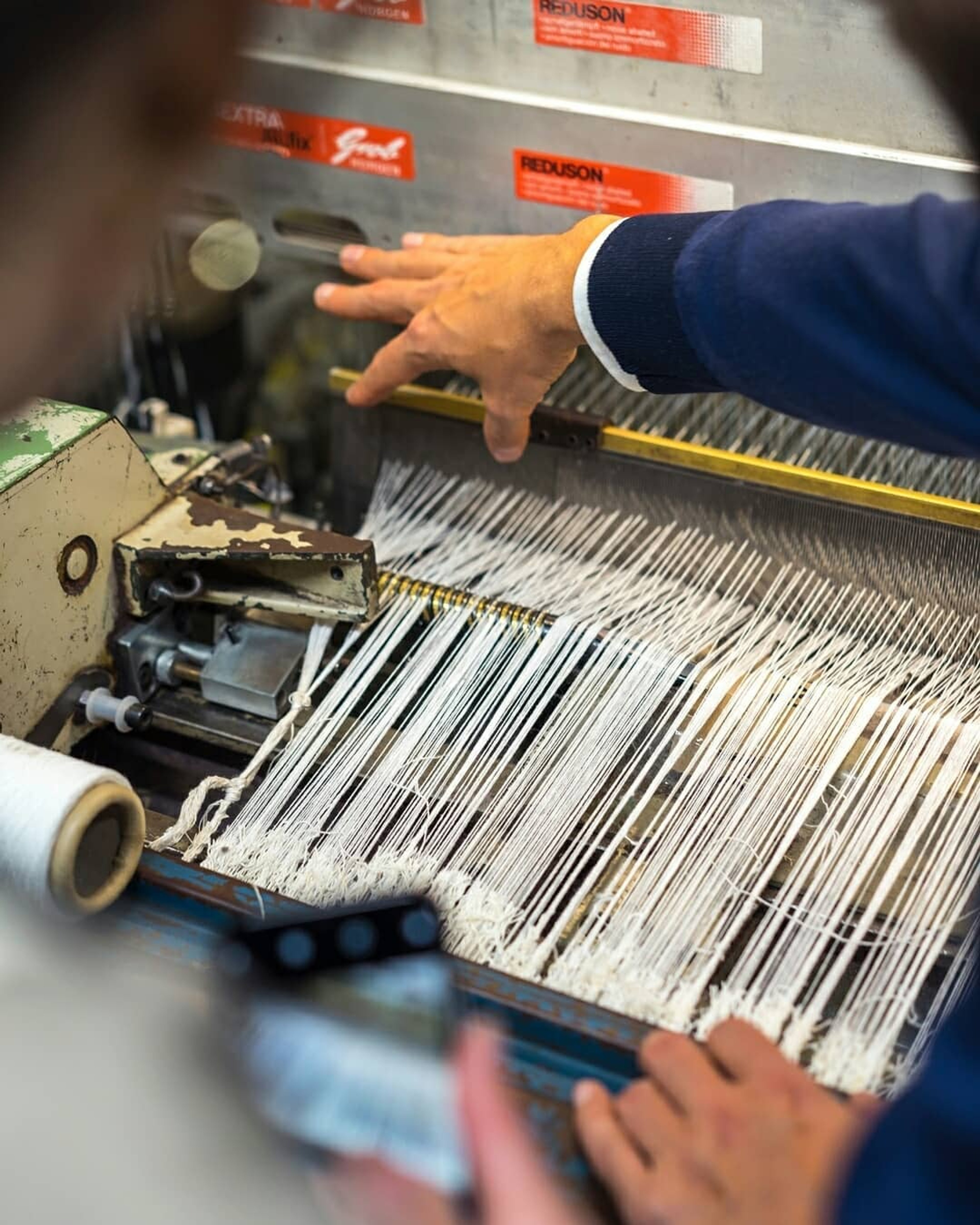 現在のデザインにたどり着くまでは試行錯誤だった。「レザートリムや素材の配合など様々な手法を試しました。」しかし最終的に姉妹はシンプルが一番だ、という結論を出した。70%はオーストラリア産のメリノウールをリサイクルしたもので、30%は工場のアルパカウールやモヘヤウールをはじめとするウールの廃材、そして強化のためにポリエステルを少し使用している。