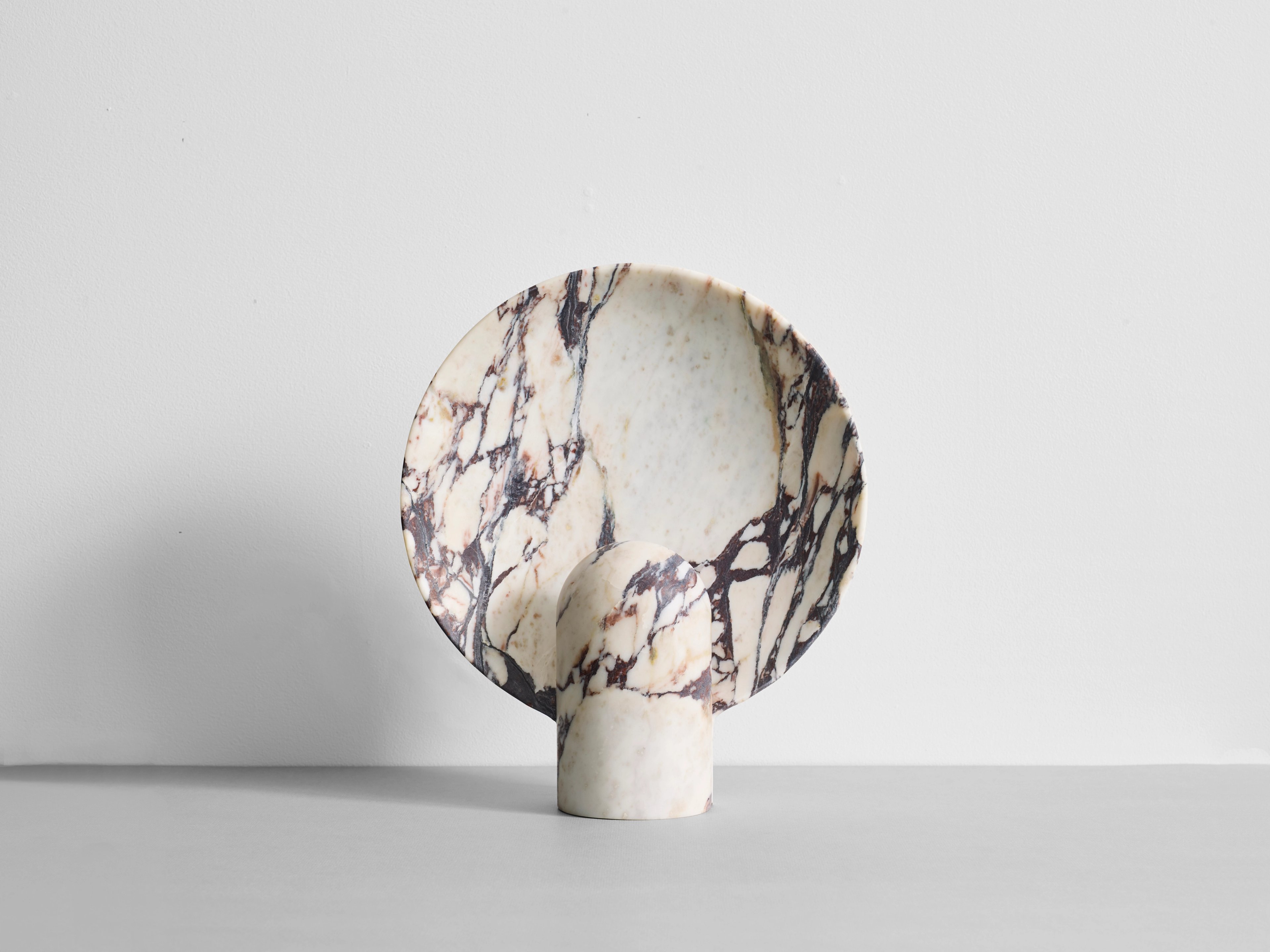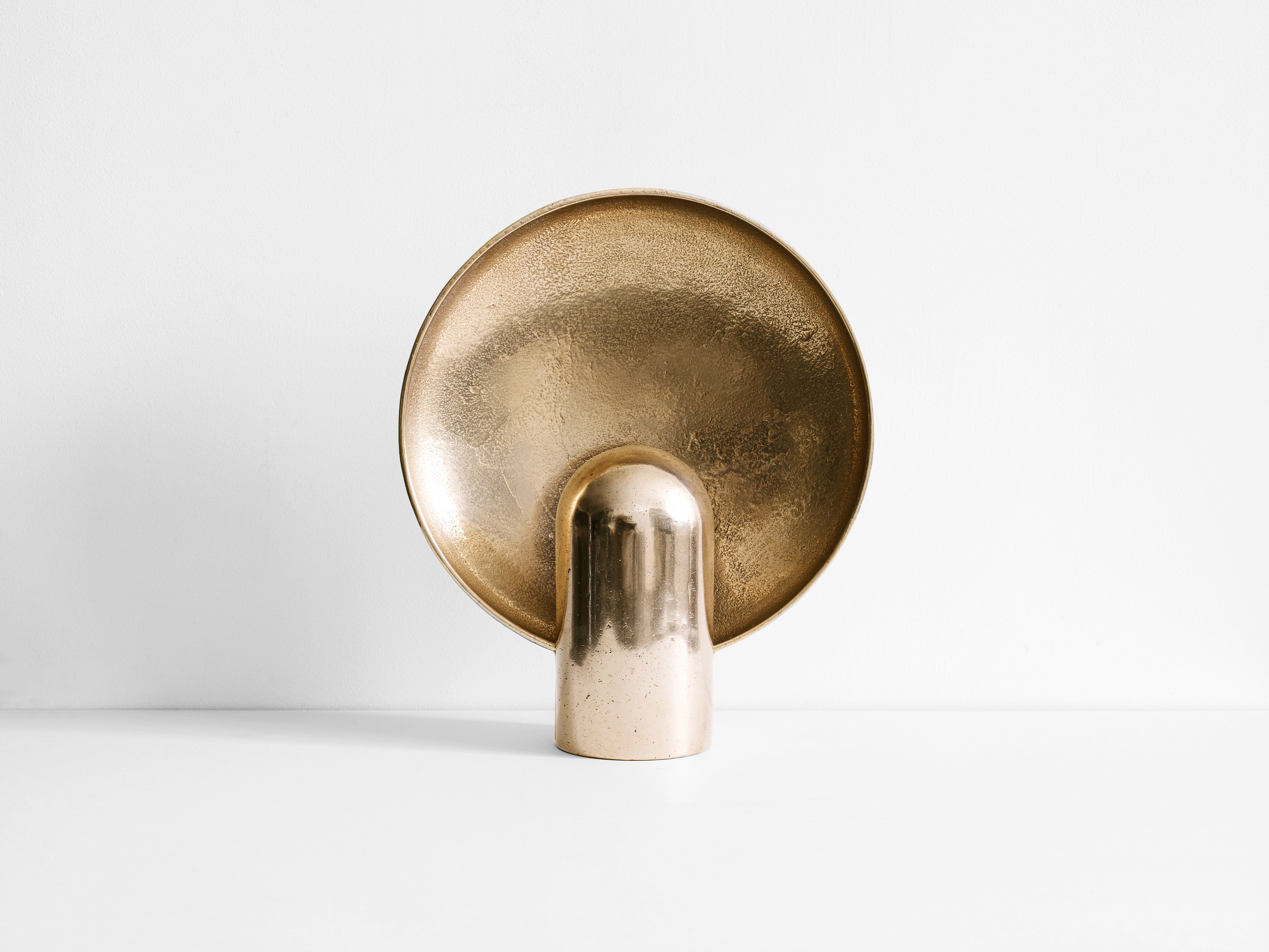 サーフェス・スコンスは、ヘンリー・ウィルソンによるデザインの魅惑的な要素を凝縮させてできた作品です。そのミニマルで普遍的なデザインは、置かれる環境を選ばず、どんな場でも適応する魅力を備えています。灯りをつけると、光が上に流れていき、ボウルのような形をした部位によって光と影が投影されます。灯りを消すと、大胆で洗練された彫刻が目の前に現れます。二面性が美しく描かれている点にも、ぜひご注目ください。